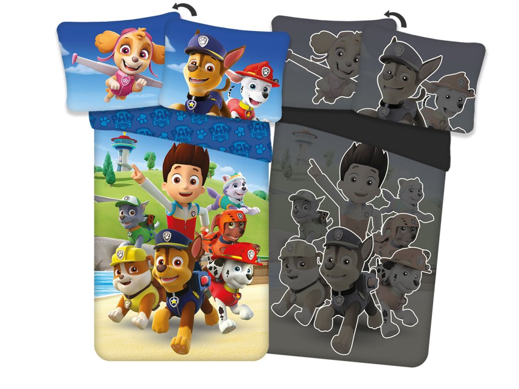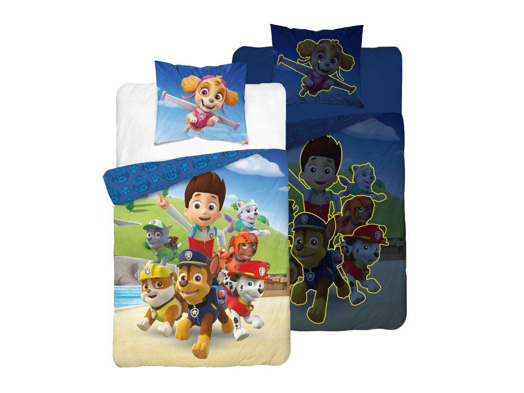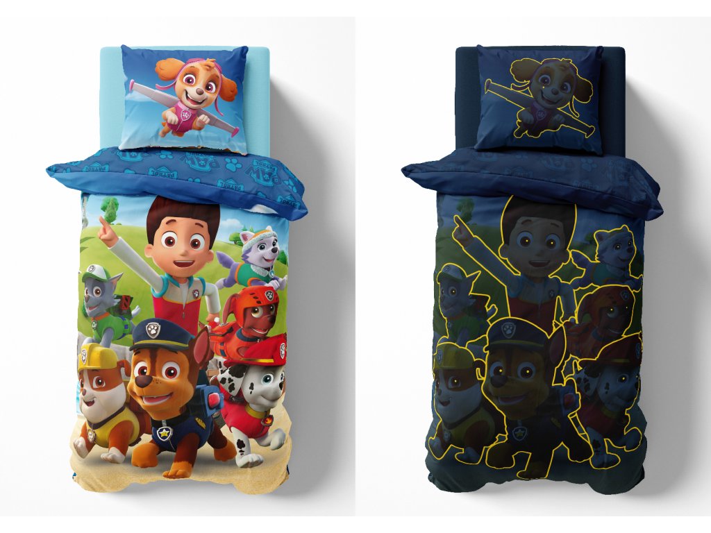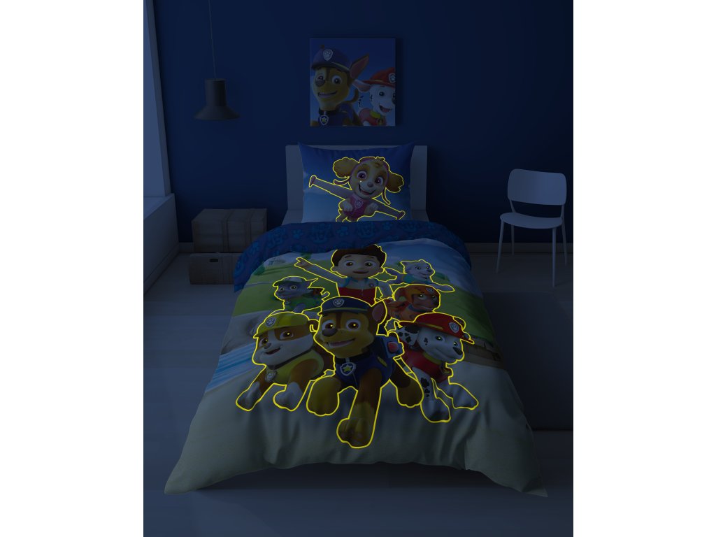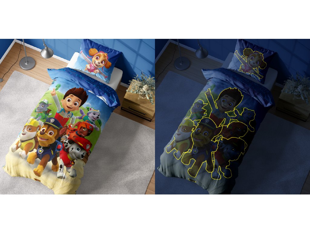 Svítící povlečení PAW PATROL Paws in Action modré 140x200 cm