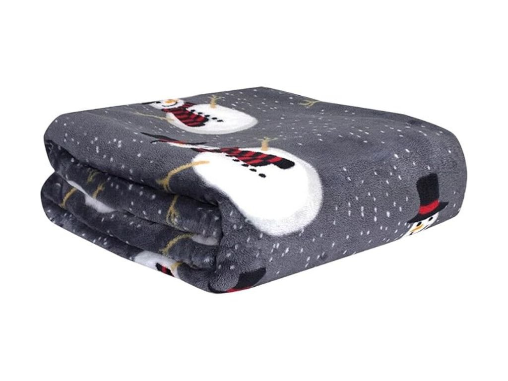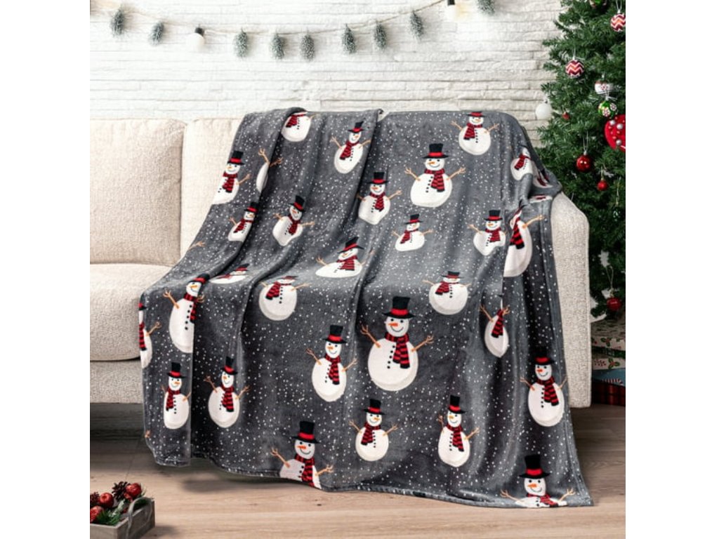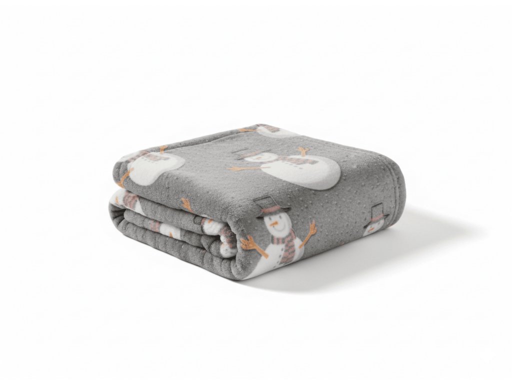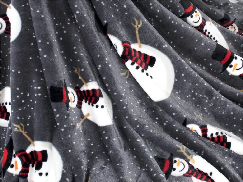 Leuchtende weihnachtliche Mikroplüsch-Decke SNOW BUDDY, grau