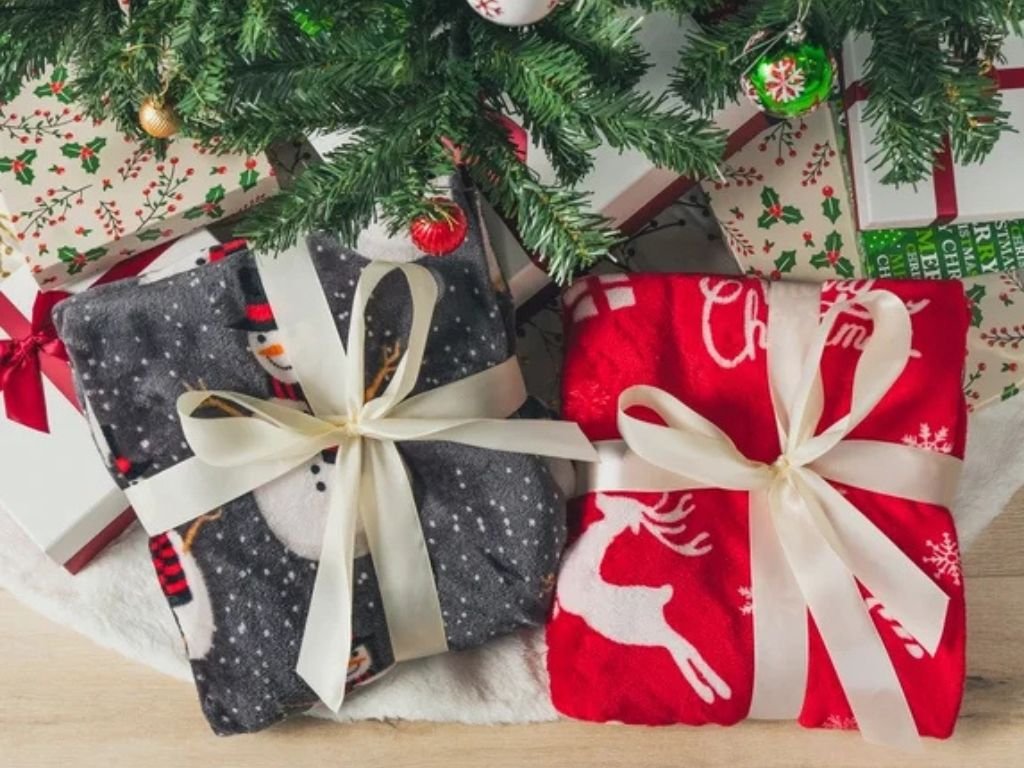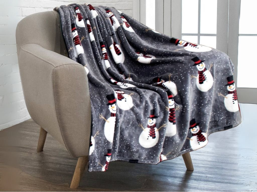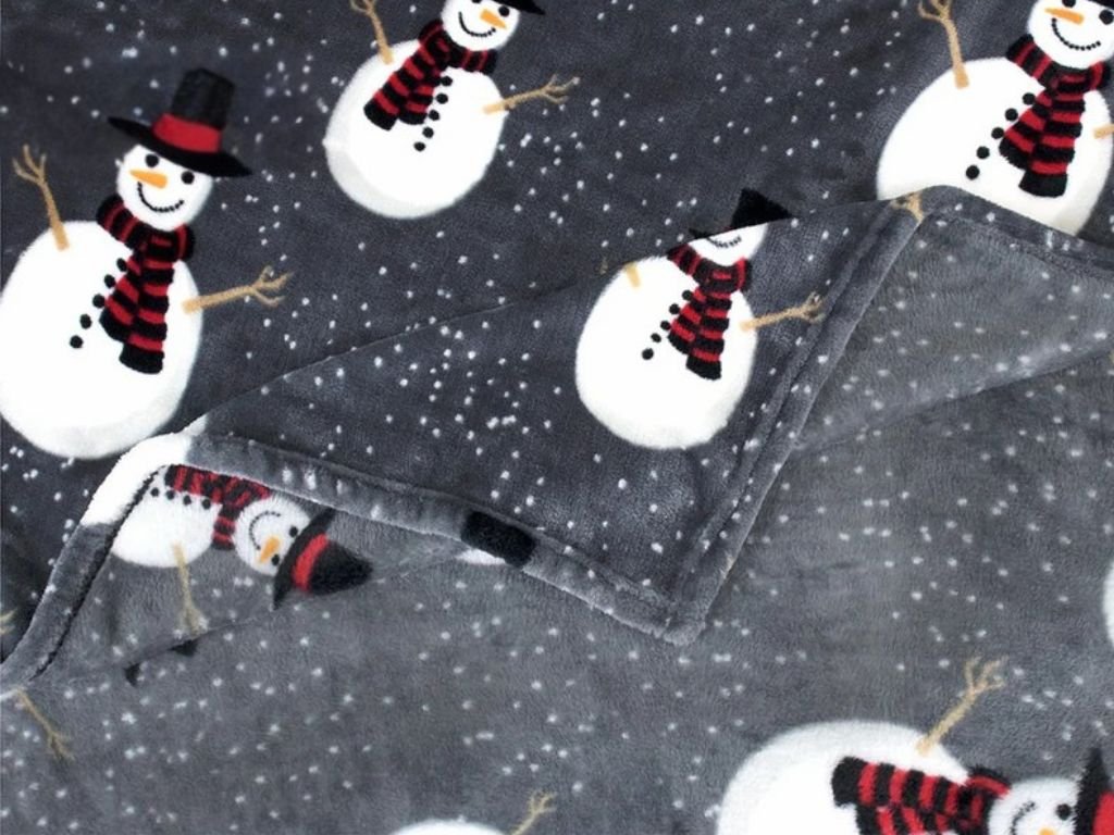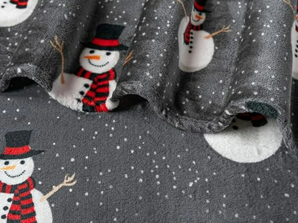 Leuchtende weihnachtliche Mikroplüsch-Decke SNOW BUDDY, grau