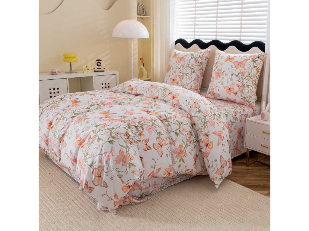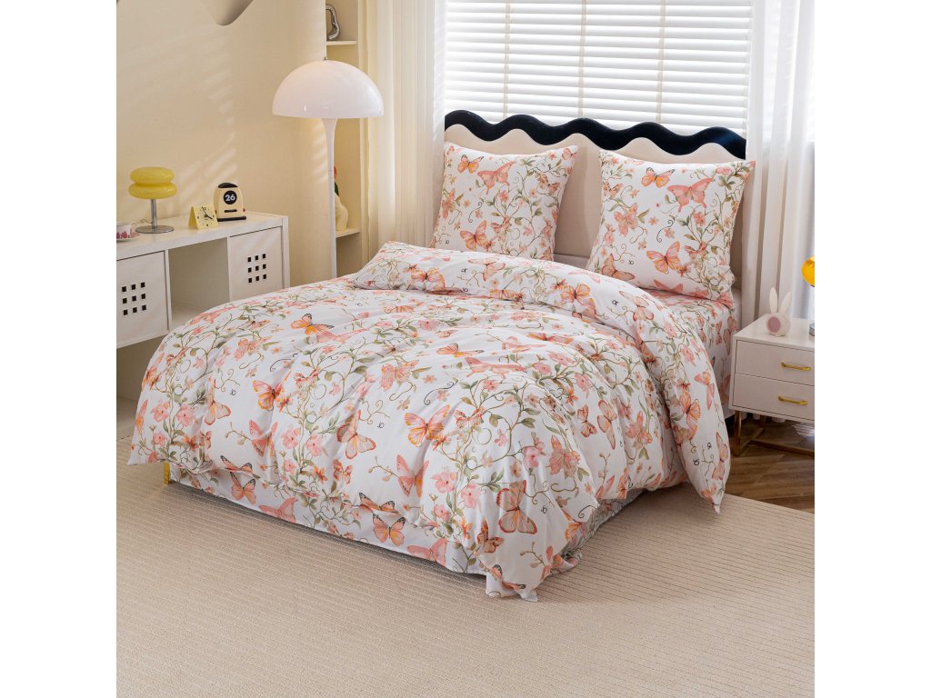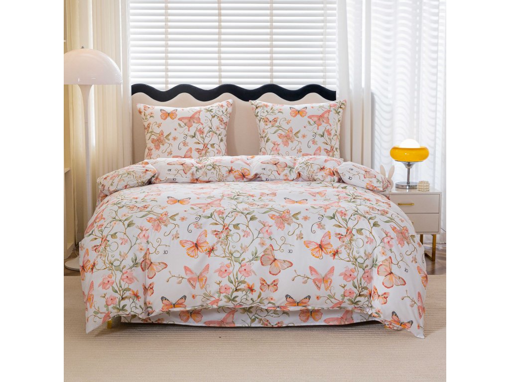 Mikrofaser-Bettwäsche ORANGE BUTTERFLY weiß