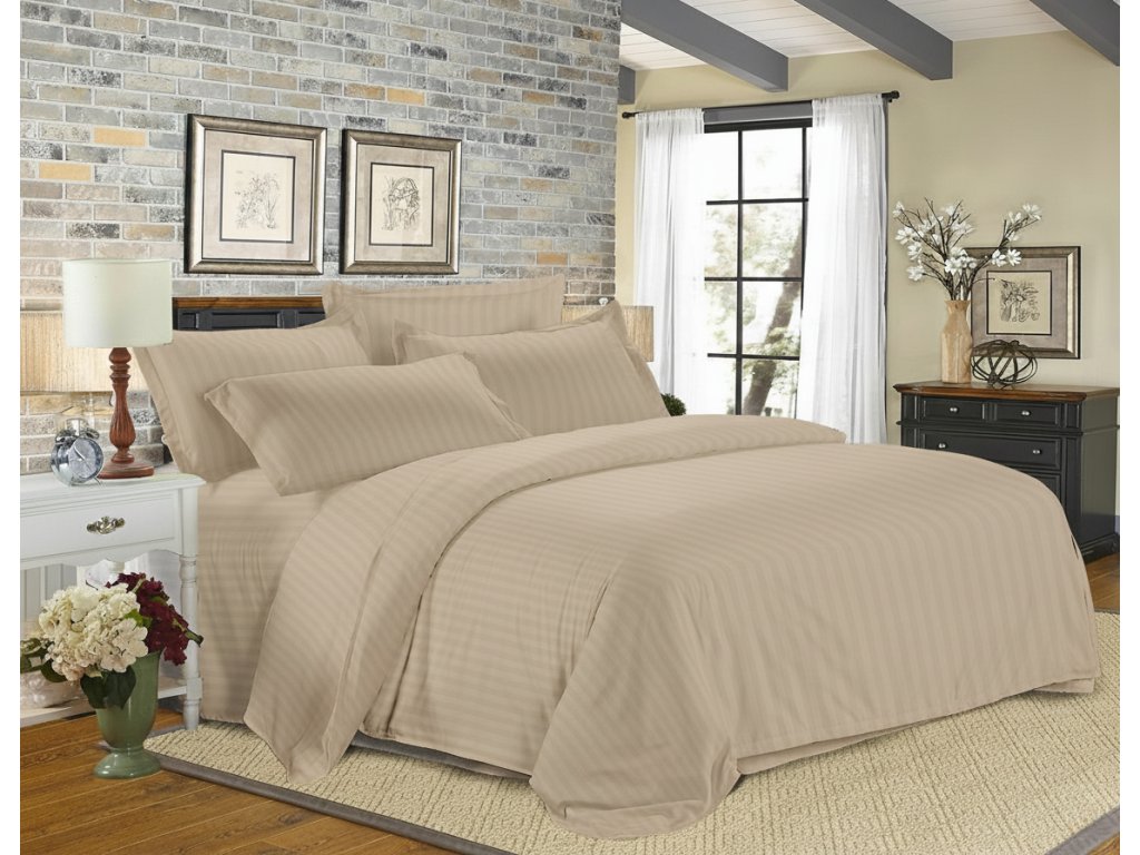 Mikrofaser Hotel-Bettwäsche JASMINE PURE hellbraun - Streifen 2 cm, Hotelverschluss
