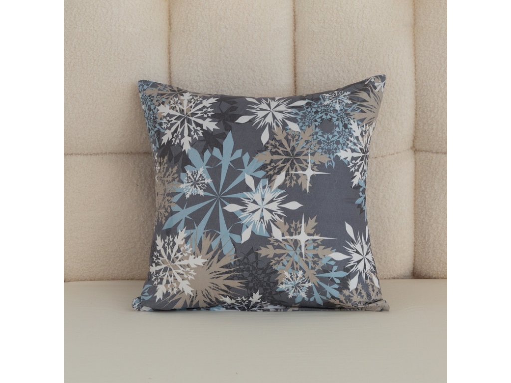 Mikrofaser-Kissenbezug SNOWFLAKE 45x45 cm, blau-grau
