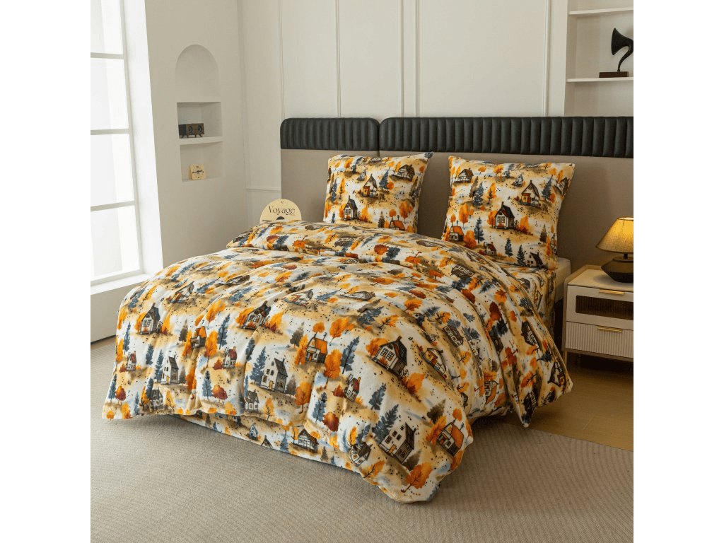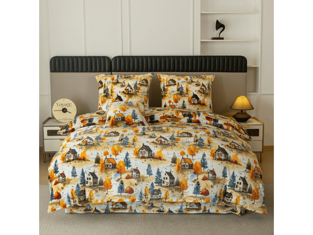 Mikroplüsch-Bettwäsche AUTUMN VILLAGE bunt