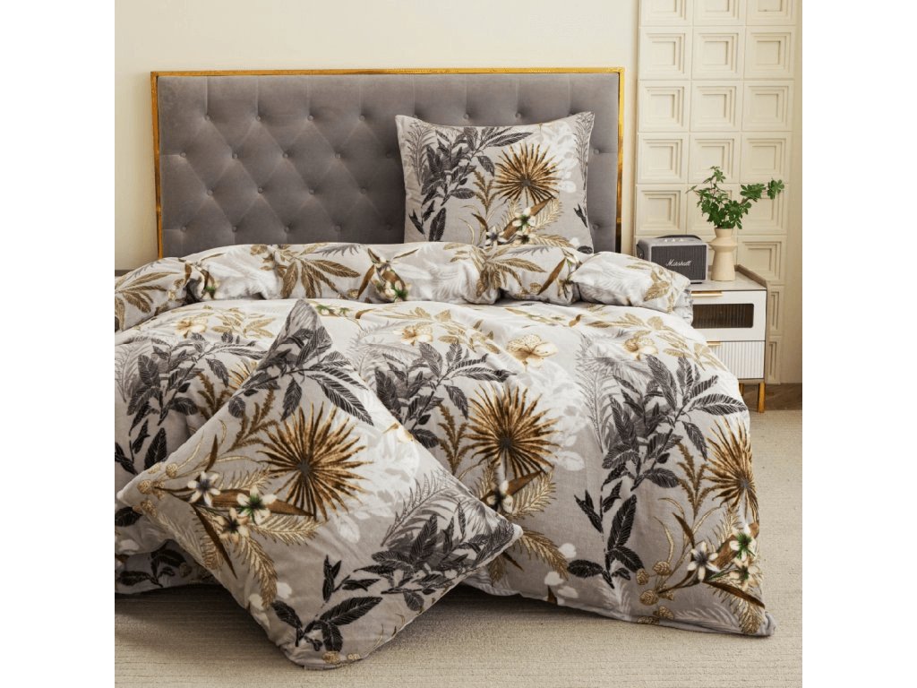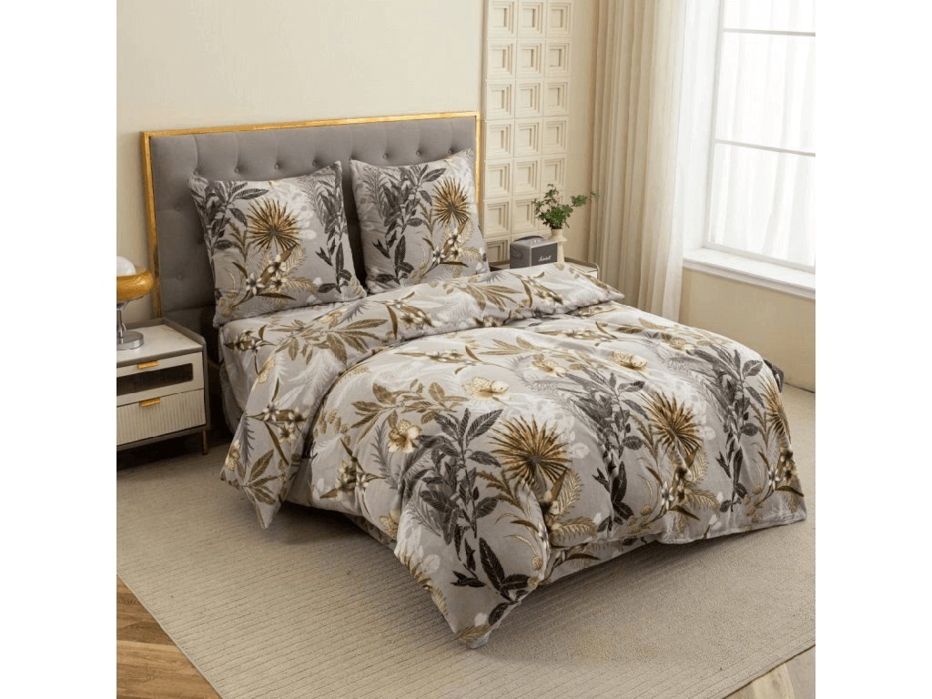 Die Grundlage für die Herstellung der Mikroplüsch-Bettwäsche ist 100% Polyester, ein Material, das aufgrund seiner extremen Feinheit als Mikrofaser bezeichnet wird. Mikrofaser und Mikroplüsch sind moderne Arten von Polyester, die sich hauptsächlich in der Oberflächenveredelung unterscheiden. Mikroplüsch ist veredelte Mikrofaser mit einer dichteren, samtigen Oberfläche, die mehr wärmt und sich wie sanfter Plüsch anfühlt. Diese synthetischen Fasern sind hoch resistent gegen mechanische Beschädigung und Abrieb, was eine lange Lebensdauer gewährleistet. Ein wesentlicher Vorteil ist, dass Mikroplüsch kein Bügeln benötigt, da es sich nicht knittert oder einläuft.