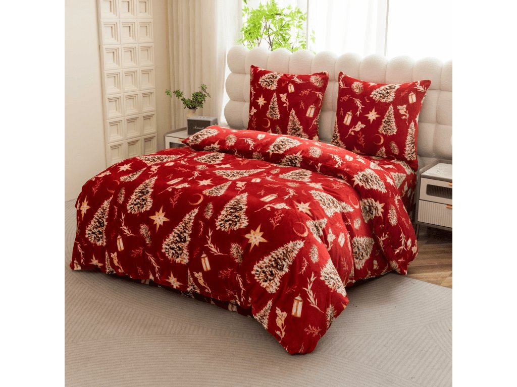 Mikroplüsch Bettwäsche GOLD CHRISTMAS rot