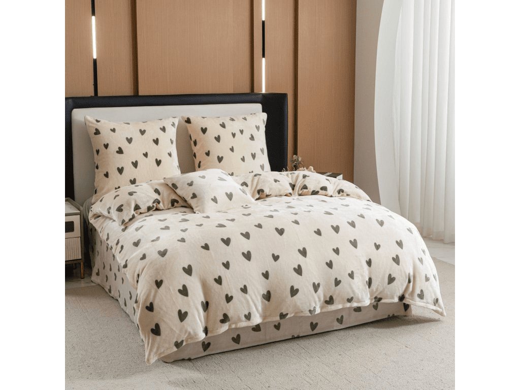 Mikroplüsch-Bettwäsche HEARTINO cremefarben