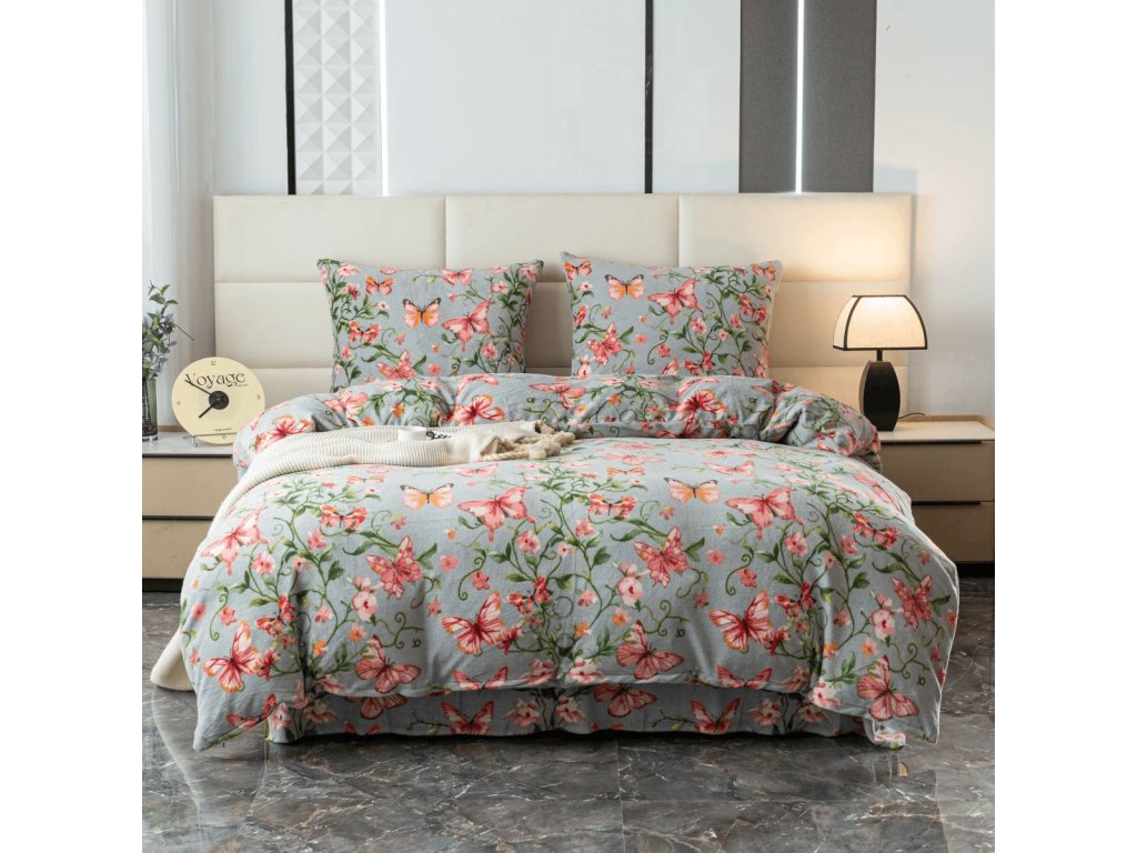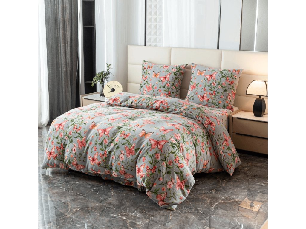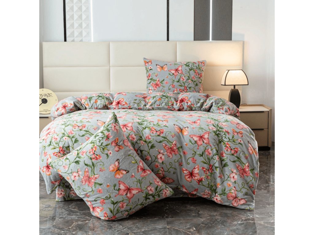 Mikroplüsch-Bettwäsche PINK BUTTERFLY grau