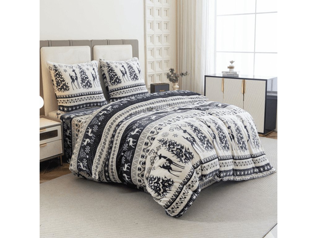 Mikroplüsch-Bettwäsche-Set WINTER DEER grau + Mikroplüsch-Spannbettlaken SOFT 90x200 cm weiß, Einzelbett