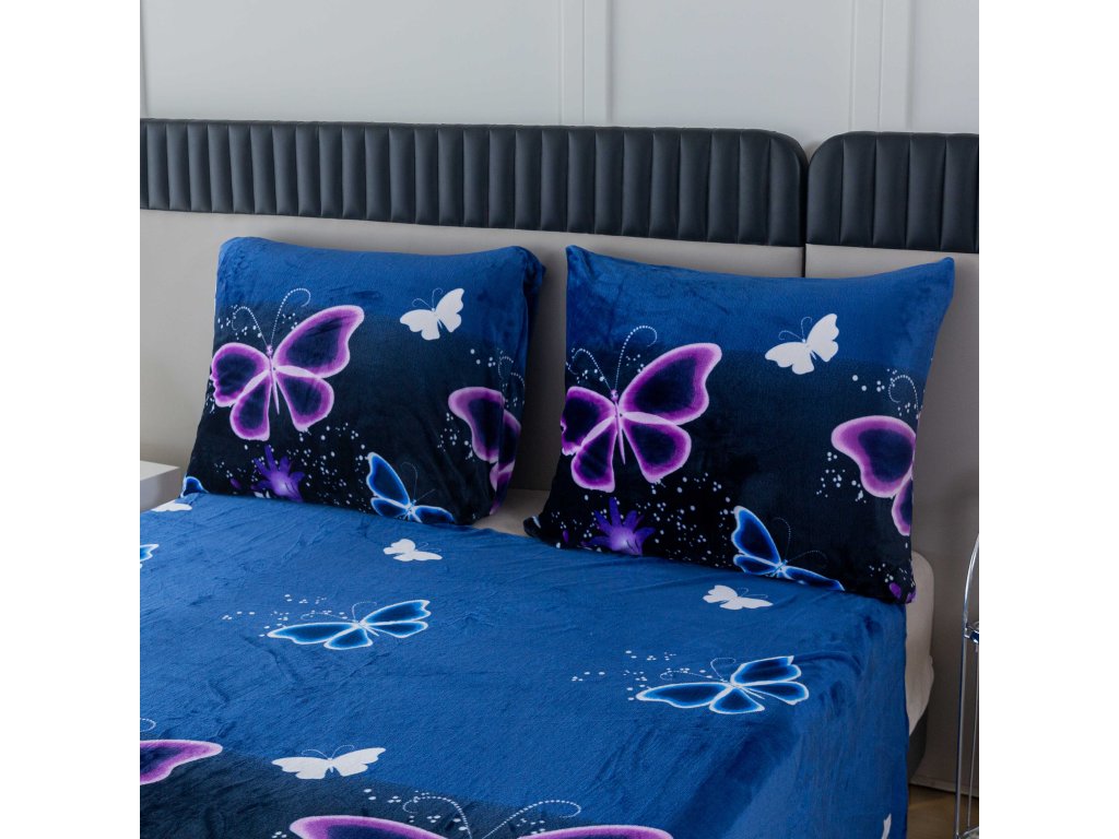 Mikroplüsch-Bettwäscheset VIOLET BUTTERFLY dunkelblau + Mikroplüsch-Spannbettlaken SOFT 90x200 cm weiß, Einzelbett