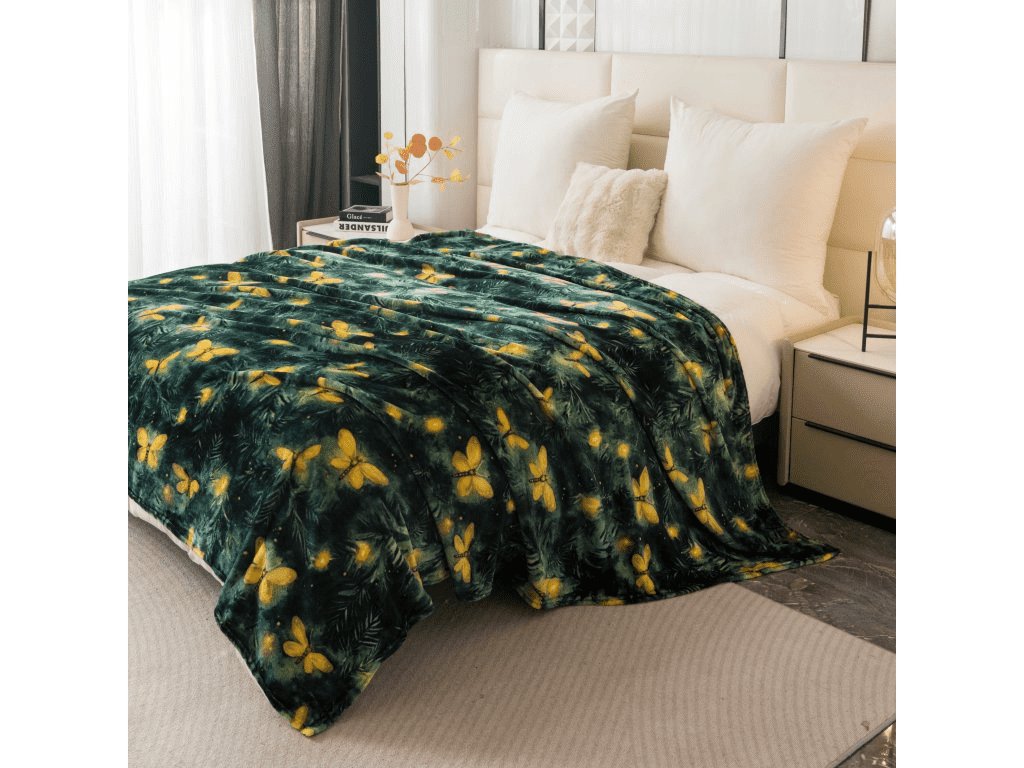 Mikroplüsch-Decke YELLOW BUTTERFLY, dunkelgrün