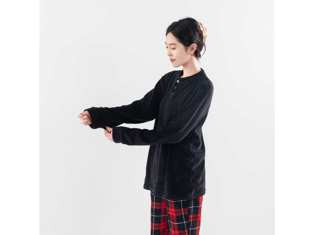 - Der Pyjama besteht aus einem Langarmshirt und einer Hose