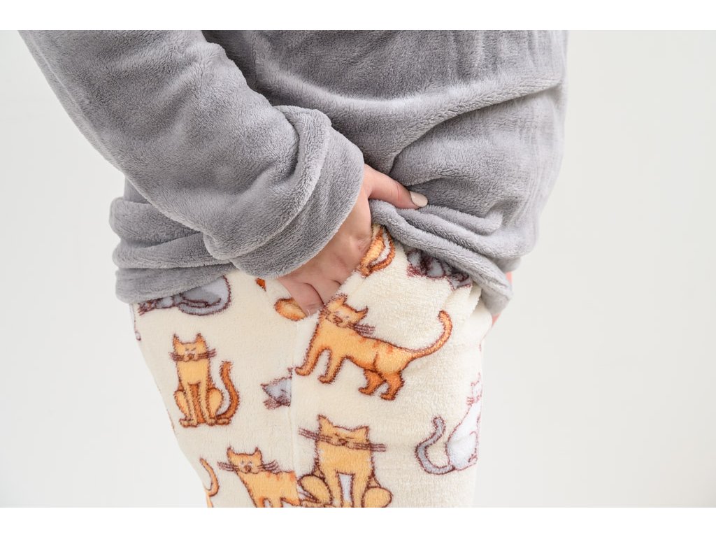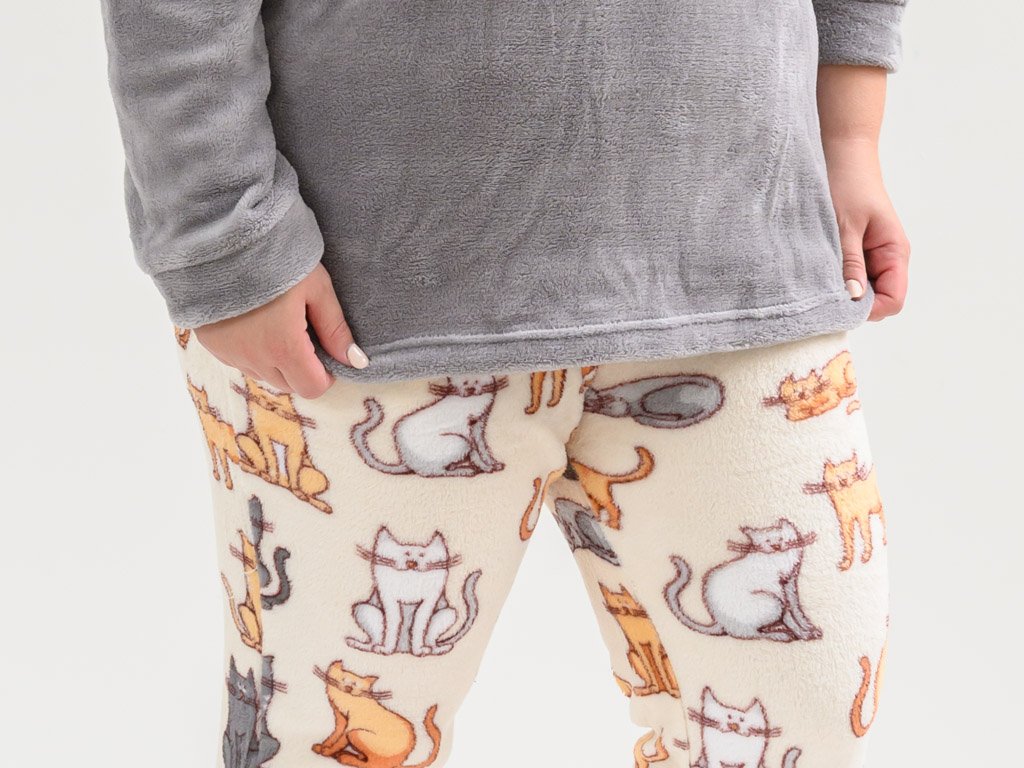 Mikroplüsch-Pyjama COLORED CATS cremefarben - verschiedene Größen