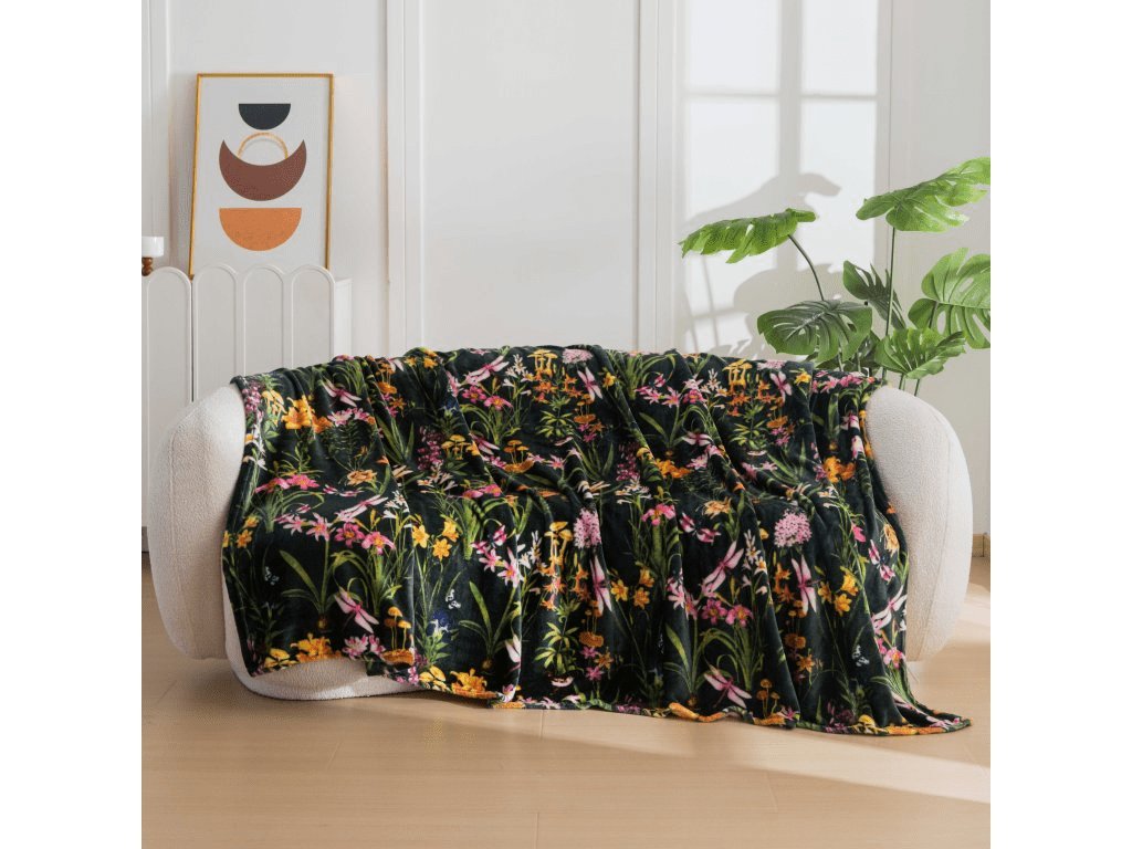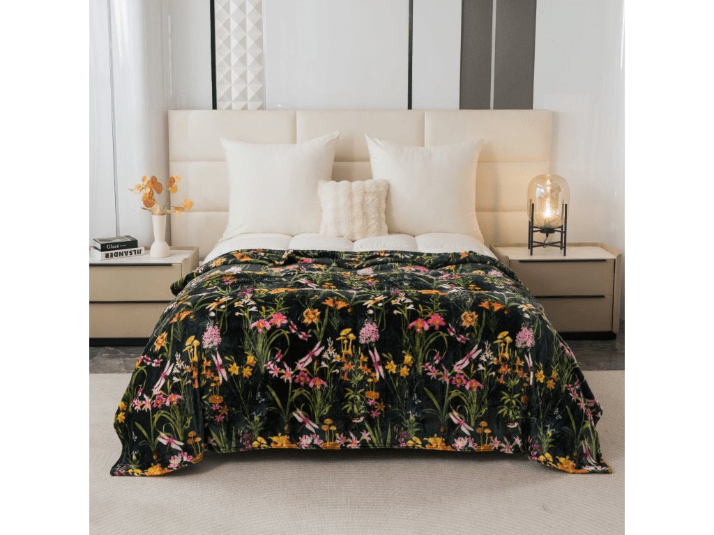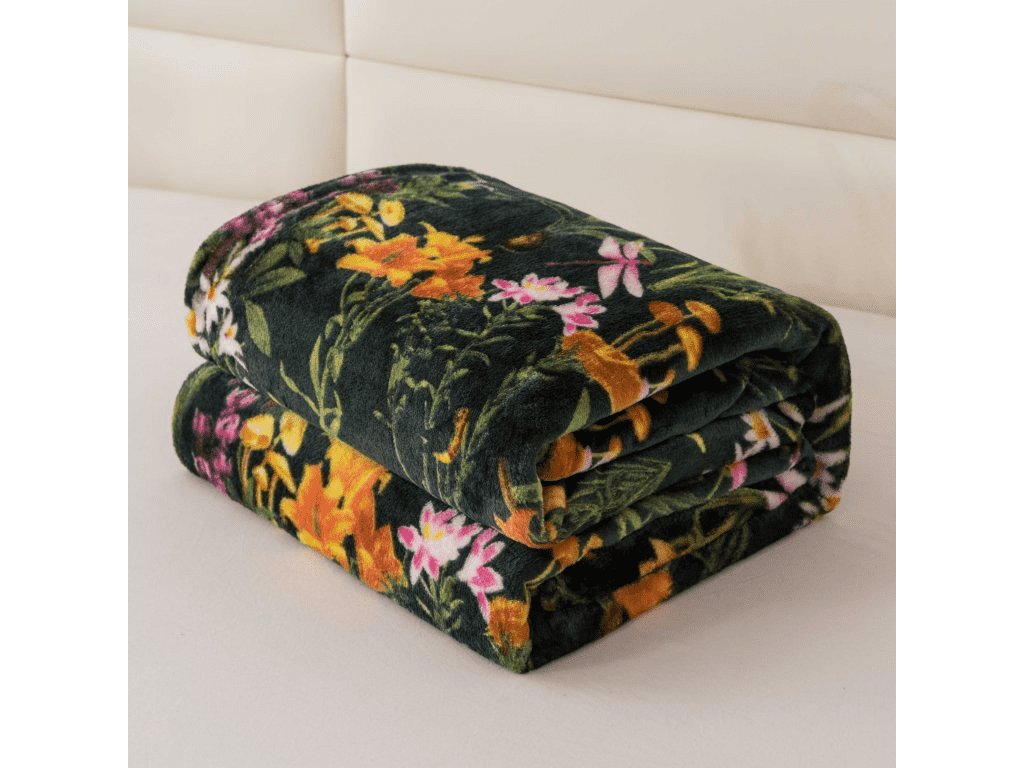 Mikroplüsch-Sherpa-Decke MYSTIC GARDEN, dunkelgrün