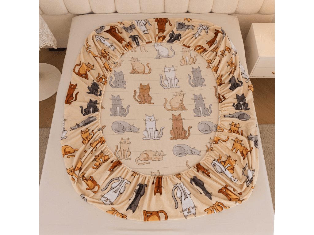 Mikroplüsch-Spannbettlaken COLORED CATS 90x200 cm cremefarben