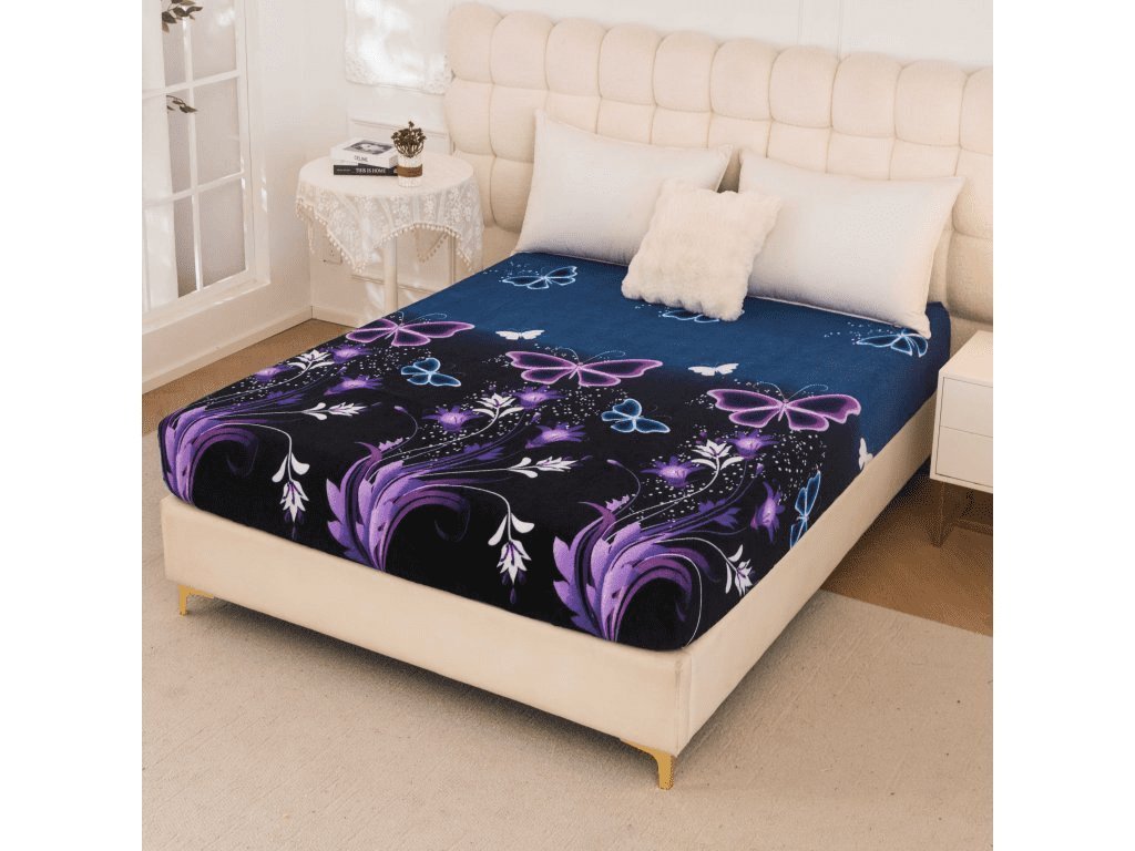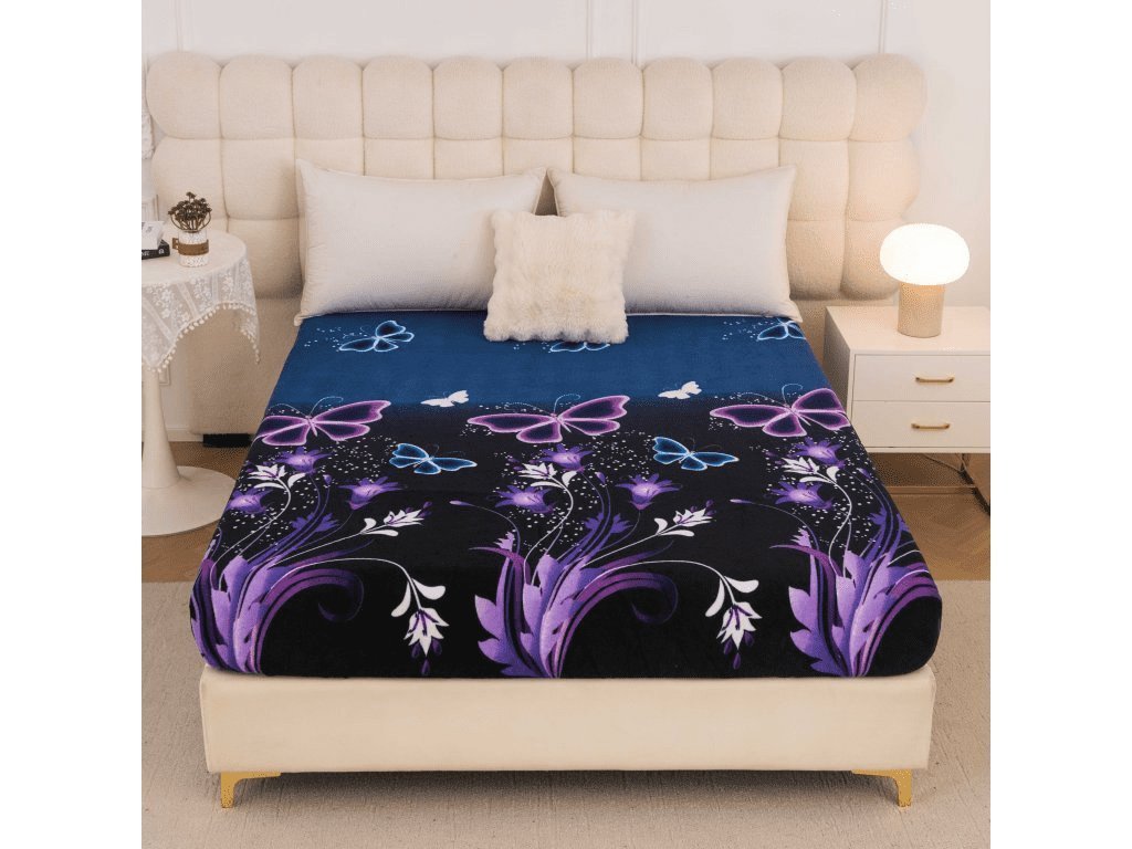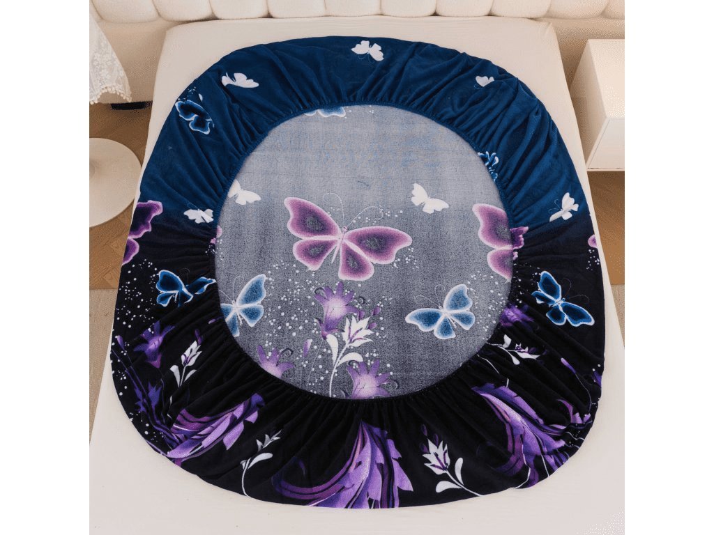 Mikroplüsch-Spannbettlaken VIOLET BUTTERFLY 90x200 cm dunkelblau