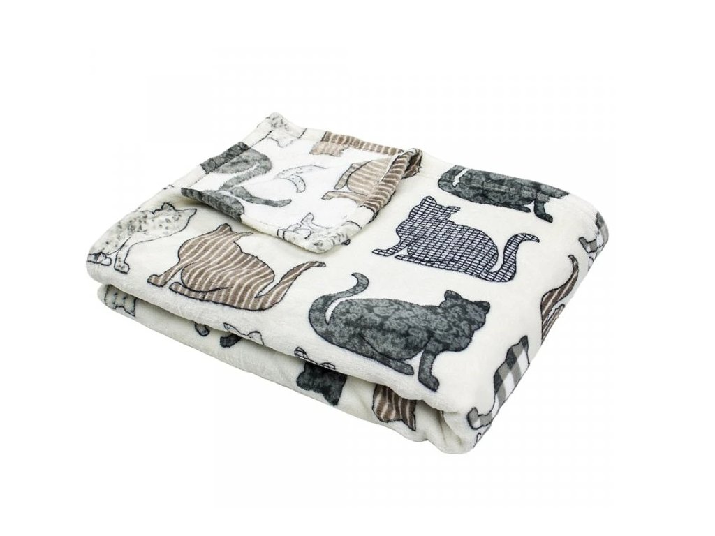 Mikroplüsch-Decke GEMUSTERTE KATZEN 150x200 cm, creme