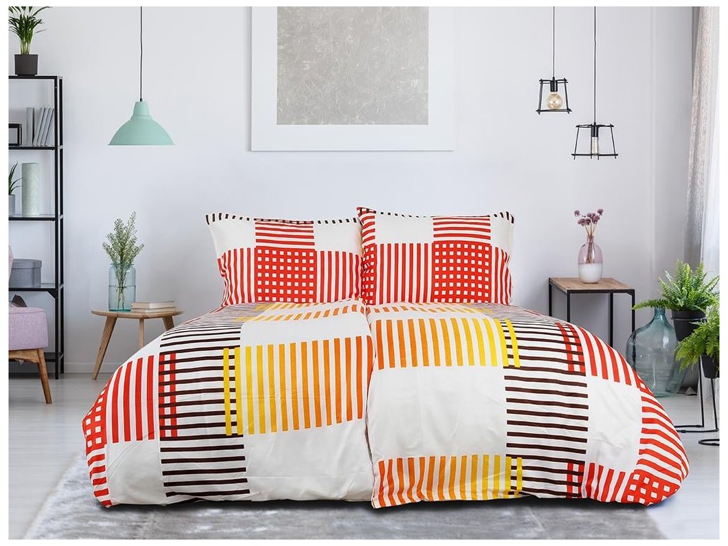 Mikrosatin-Bettwäsche MIRVOLLI, weiß-rot