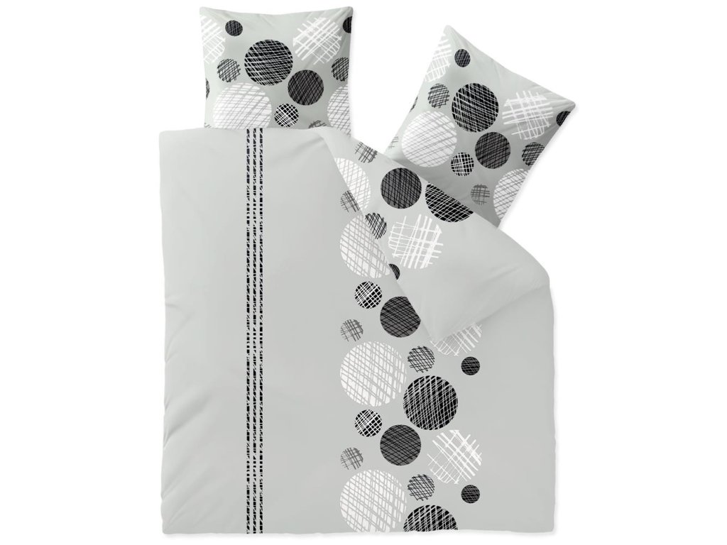 Die Renforcé-Baumwoll-Bettwäsche CELINA in elegantem Weiß mit modernem Motiv aus schwarzen und grauen Kreisen bringt Stil und Leichtigkeit in Ihr Schlafzimmer. Der sanfte Kontrast der geometrischen Muster auf hellen Hintergrund beeindruckt durch Einfachheit und zeitloses Design.