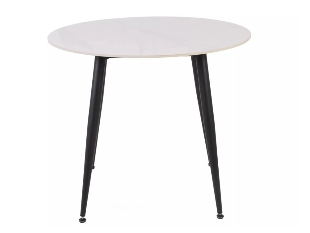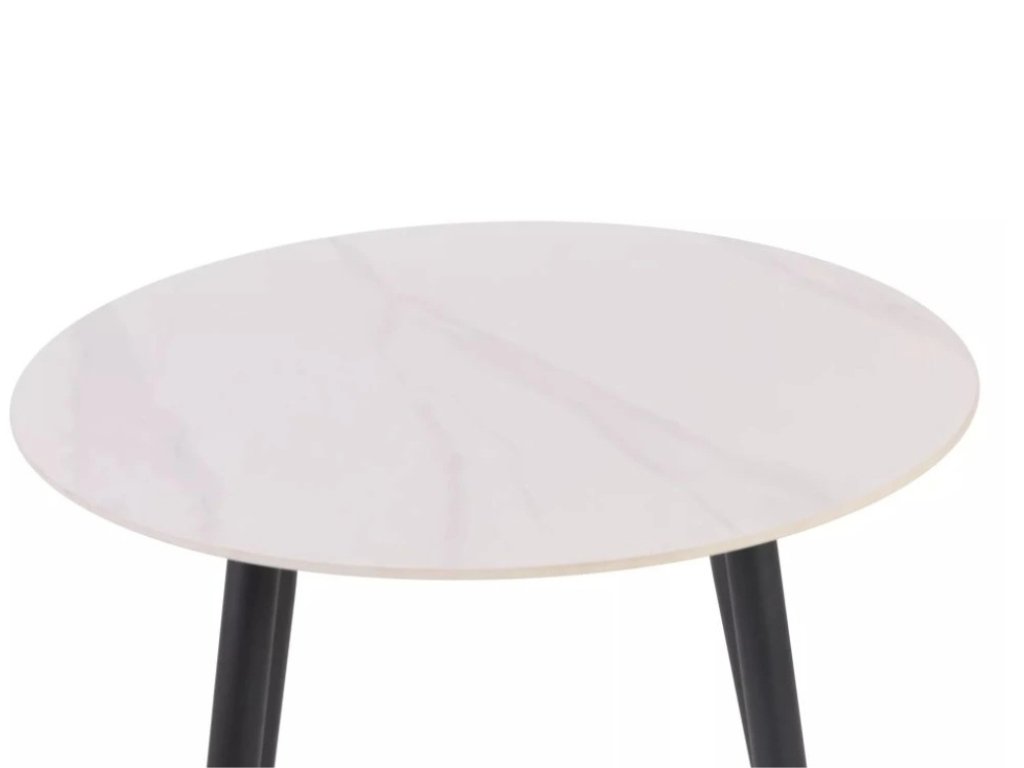 Runder Esstisch RION 90 cm mit Keramikplatte, weißer Marmor