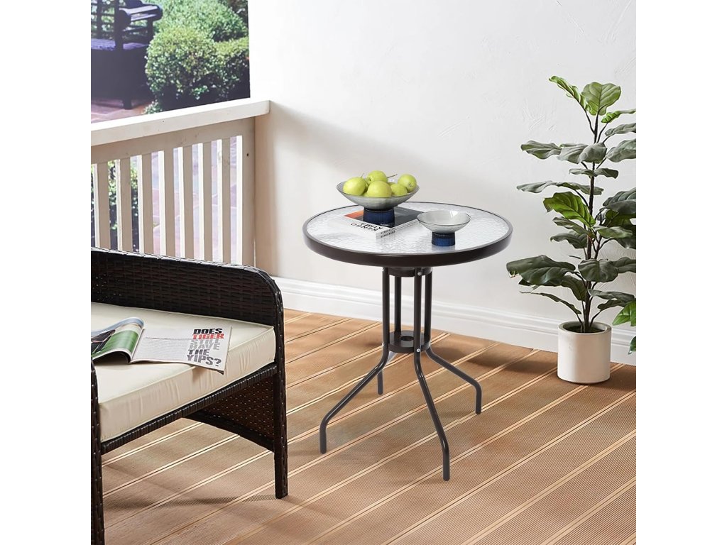 Runder Gartentisch mit Glasplatte ISLAND 60 cm, schwarz