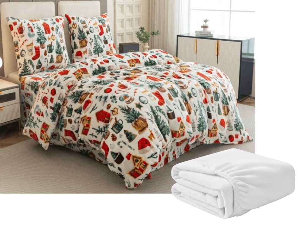 Sada 2ks mikroplyšového povlečení FESTIVE MAGIC bílé + prostěradlo mikroplyš SOFT 180x200 cm bílé, dvoulůžko