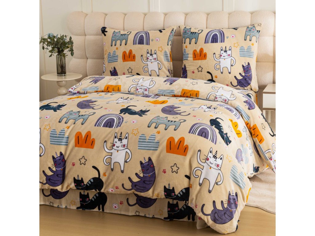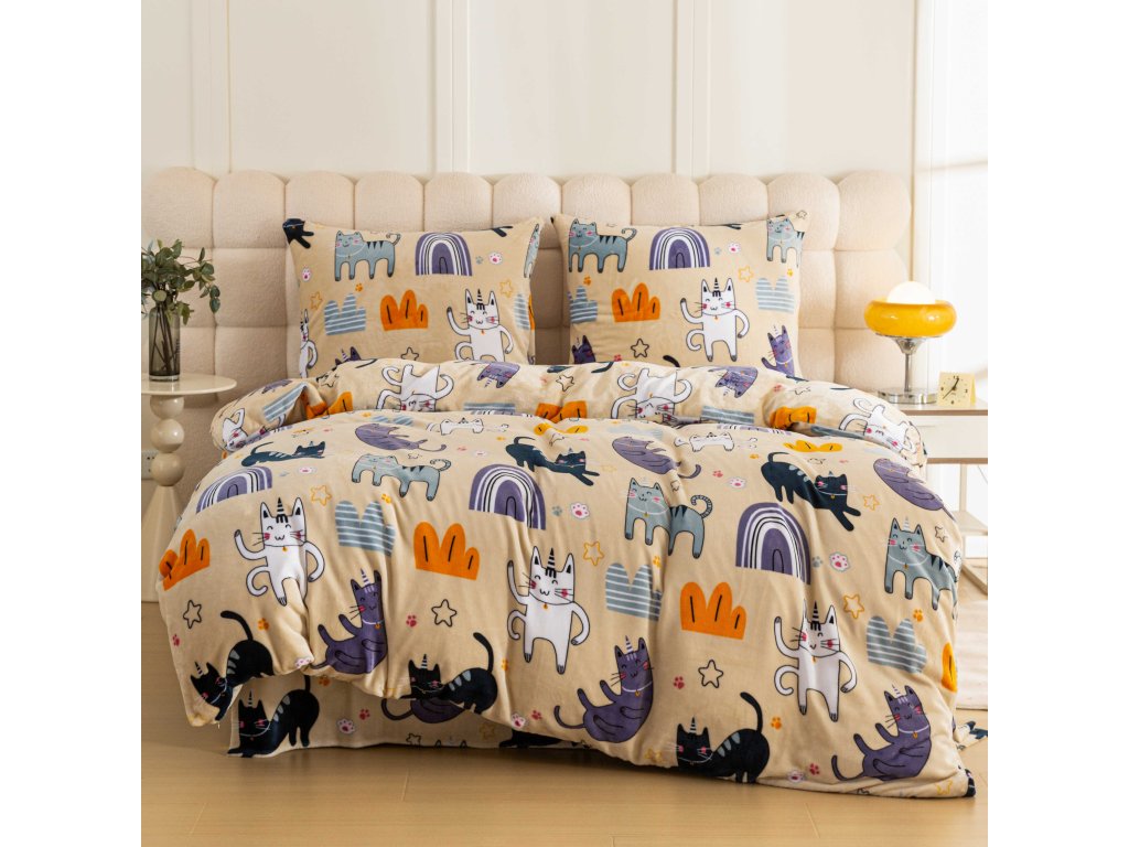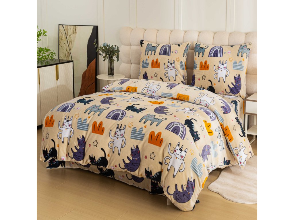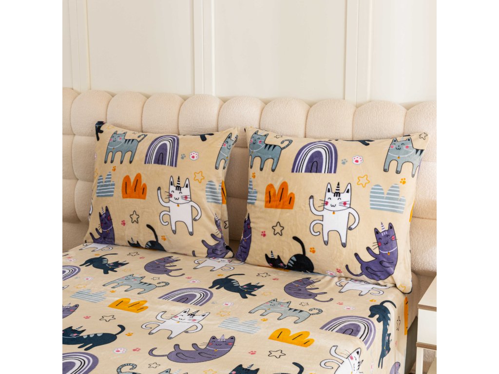 Sada mikroplyšového povlečení PURRSLEEP béžové + prostěradlo mikroplyš SOFT 90x200 cm bílé, jednolůžko