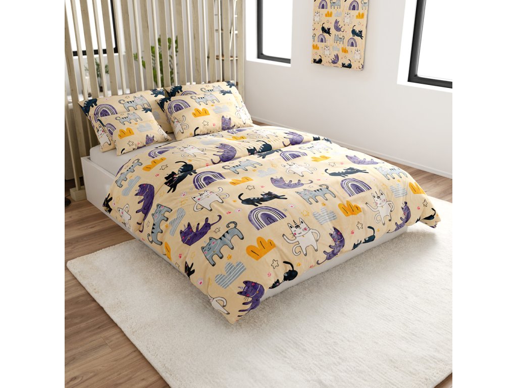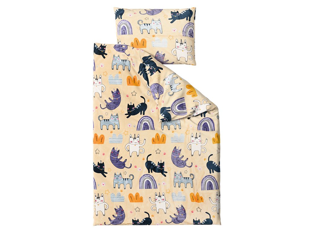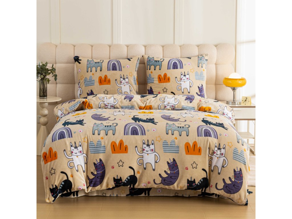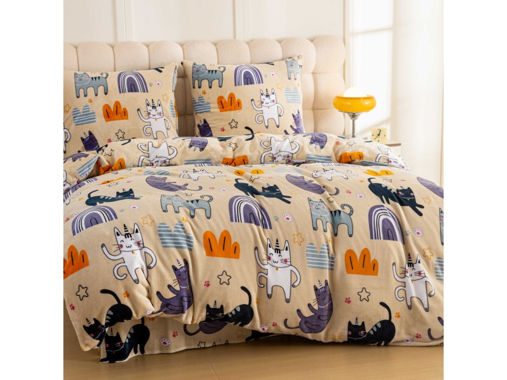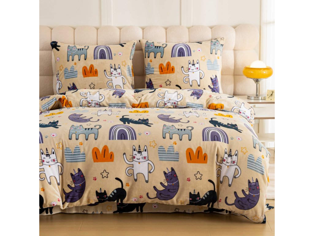 Sada mikroplyšového povlečení PURRSLEEP béžové + prostěradlo mikroplyš SOFT 90x200 cm bílé, jednolůžko