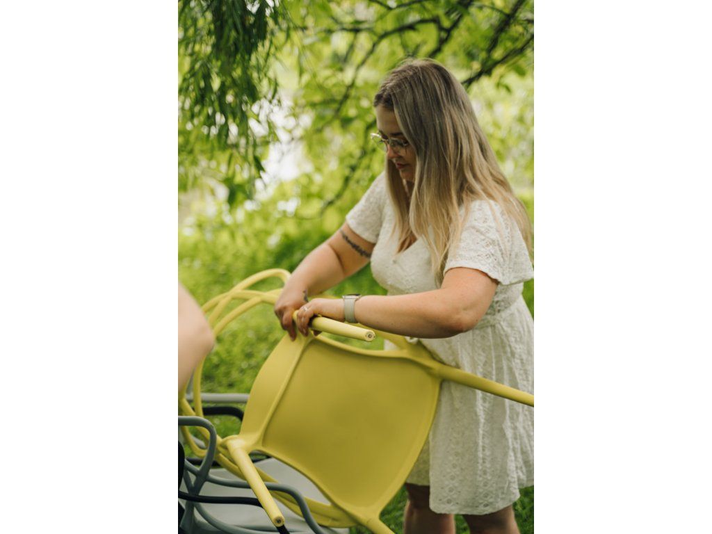 - Kunststoff ist nicht UV-stabil – wir empfehlen, den Stuhl vor direkter Sonneneinstrahlung zu schützen