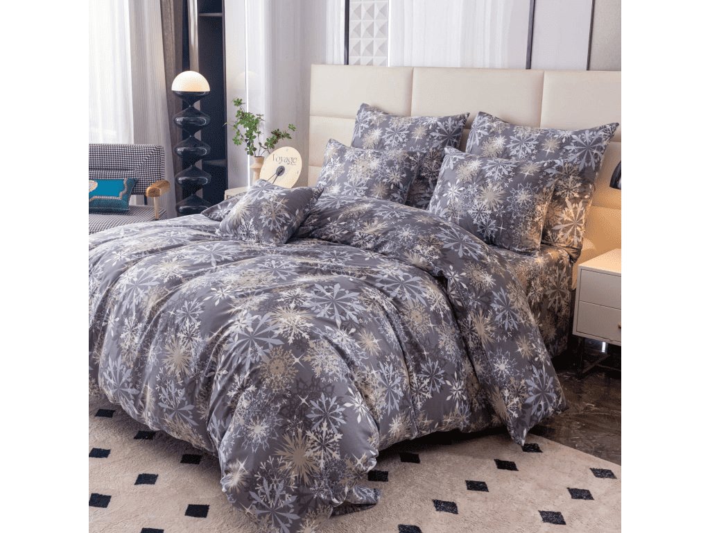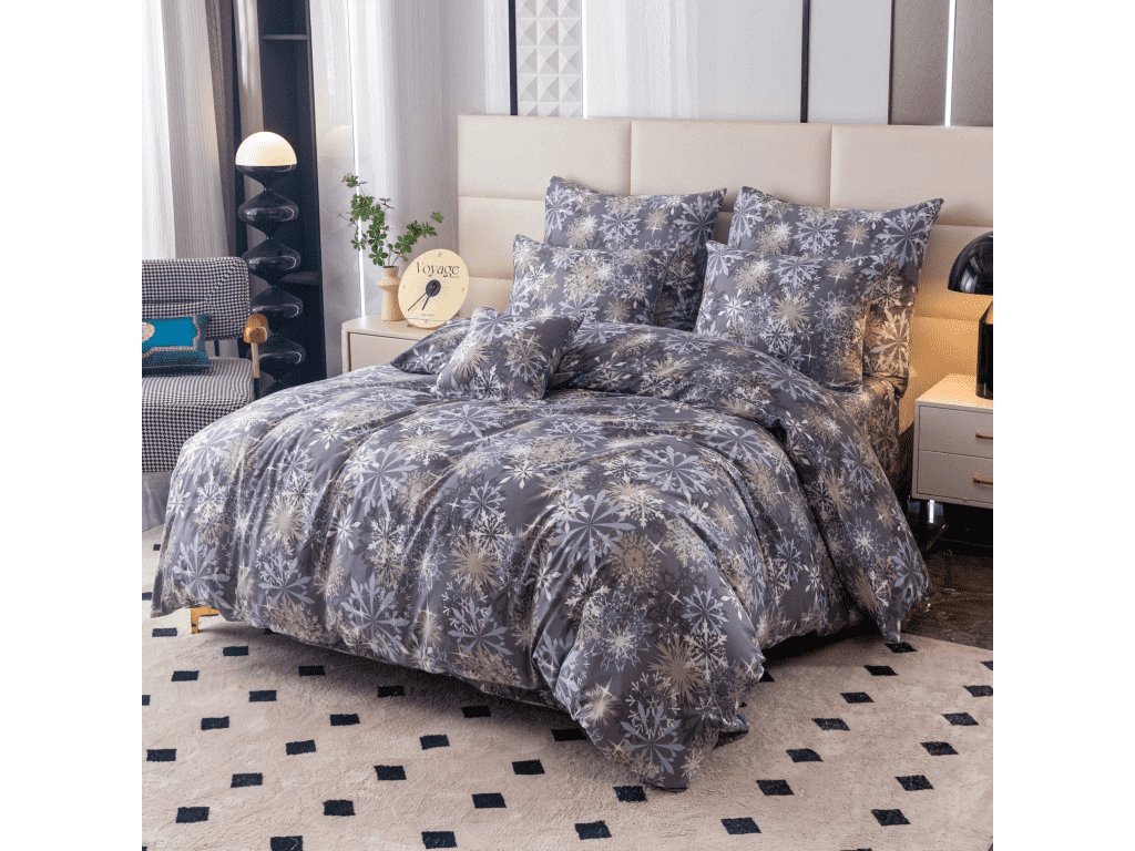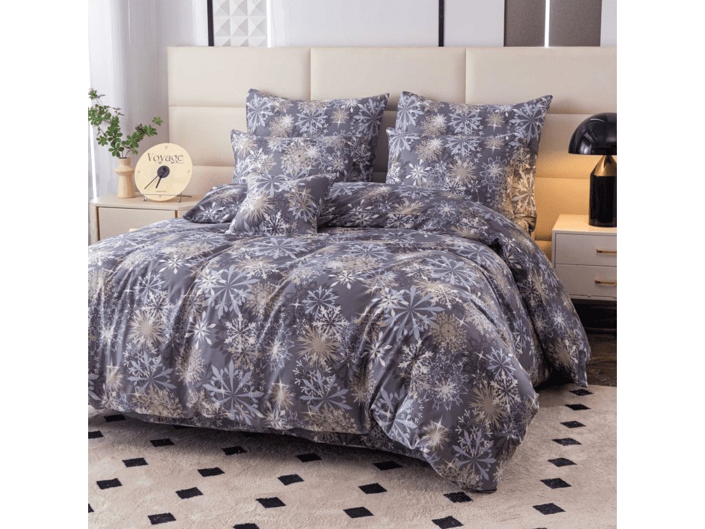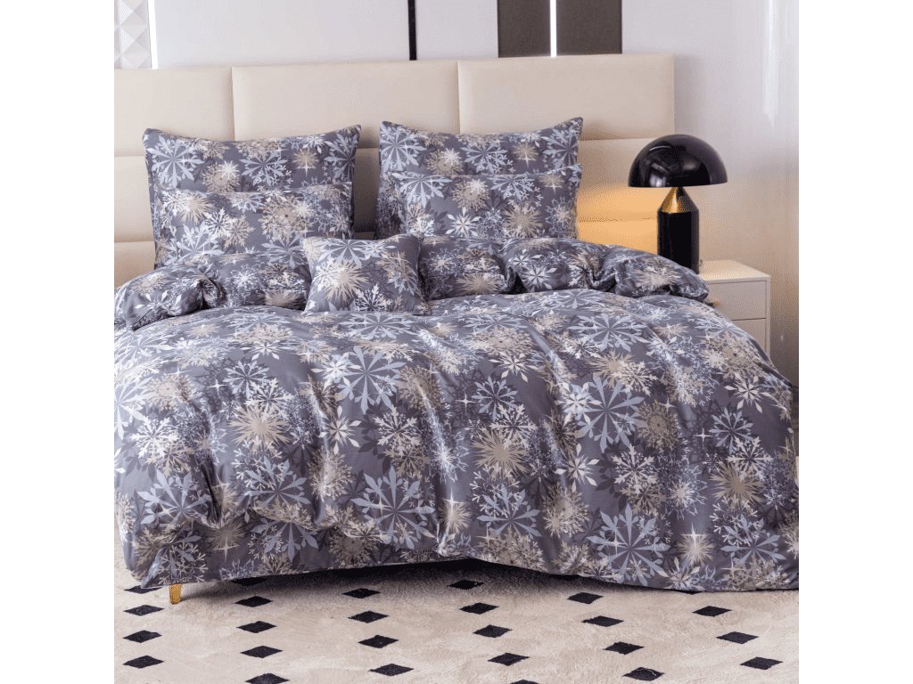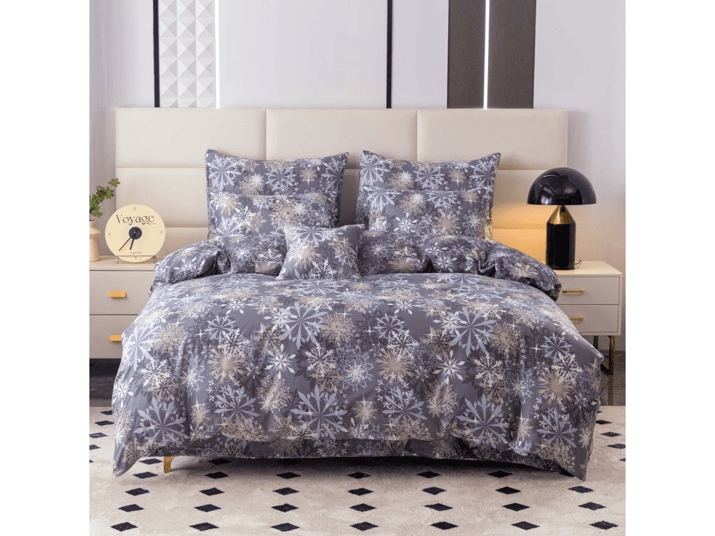 Set aus 2 Mikrofaserdecken SCHNEEFLOCKE blau-grau + Jersey Spannbettlaken 180x200cm weiß, Doppelbett