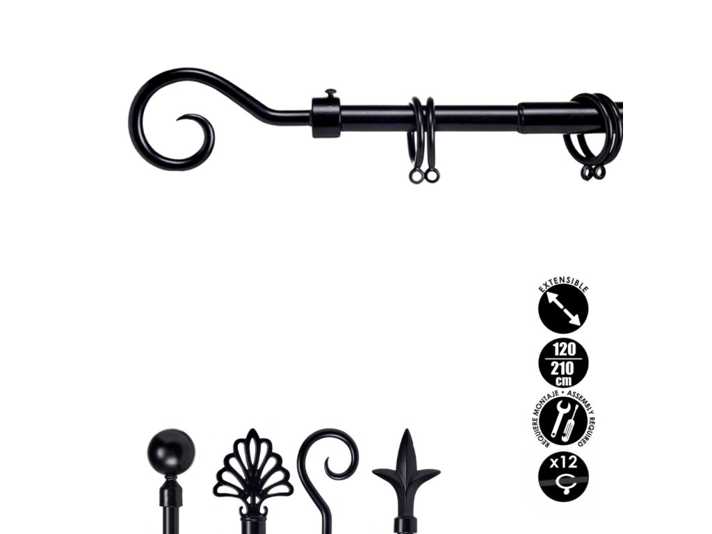 Gardinenstange aus Metall VALANCE LOOP 120-210 cm, schwarz