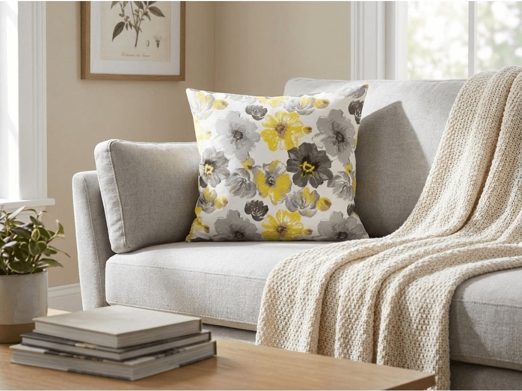 Set 2 Stk. dekorative Mikrofaser-Kissenbezüge FEONELLE 45x45 cm, gelb-grau