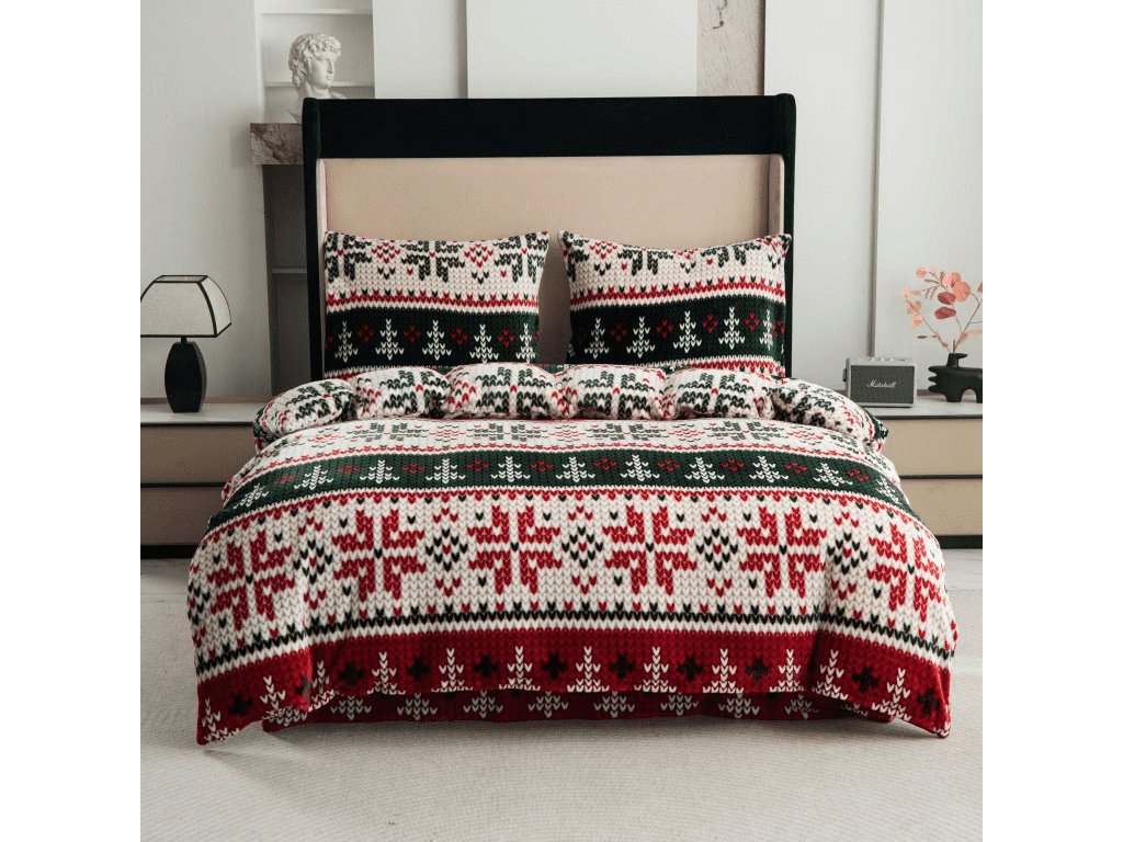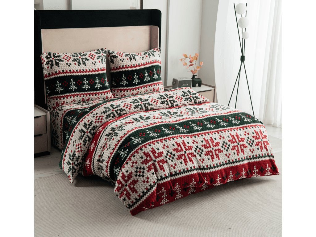 Set aus 2 Stk. Mikroplüsch-Bettwäsche FROSTED CHRISTMAS bunt + Mikroplüsch-Spannbettlaken SOFT 180x200 cm weiß, Doppelbett