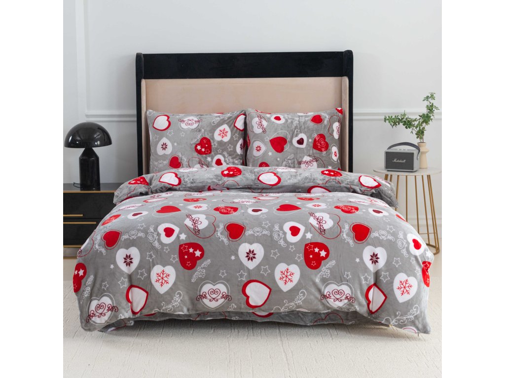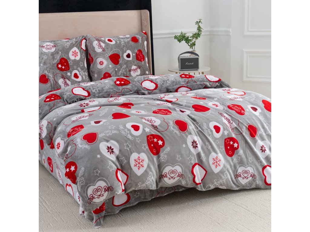 Set aus 2 Stk. Mikroplüsch-Bettwäsche WEIHNACHTSHERZEN grau + Mikroplüsch-Spannbettlaken SOFT 180x200 cm weiß, Doppelbett