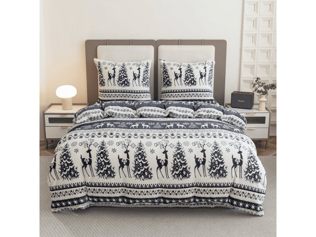 Set aus 2 Stk. Mikroplüsch-Bettwäsche WINTER DEER grau + Mikroplüsch-Spannbettlaken SOFT 180x200 cm weiß, Doppelbett