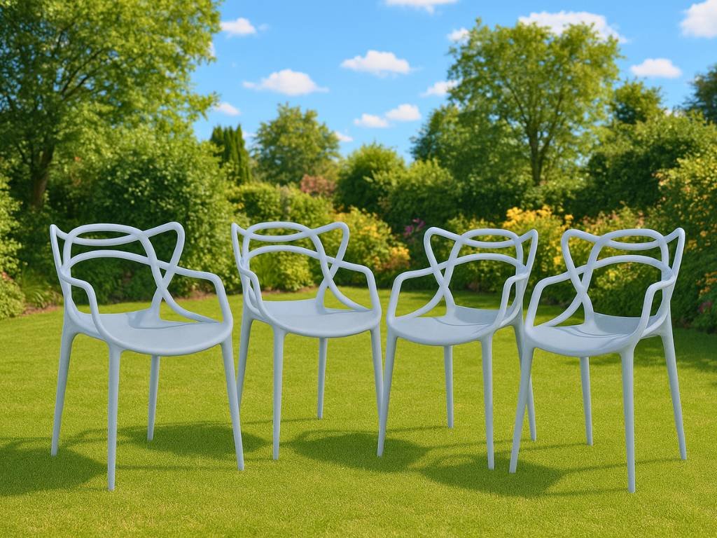 Set mit 4 hellgrauen Kunststoffstühlen KATO