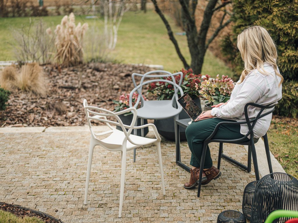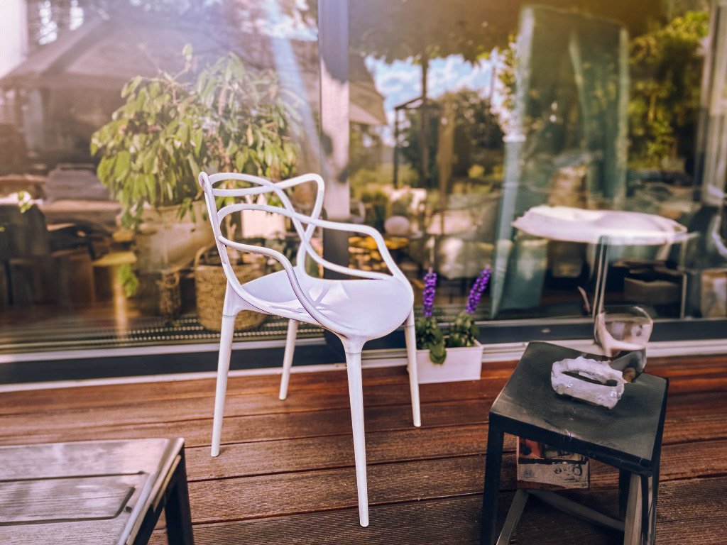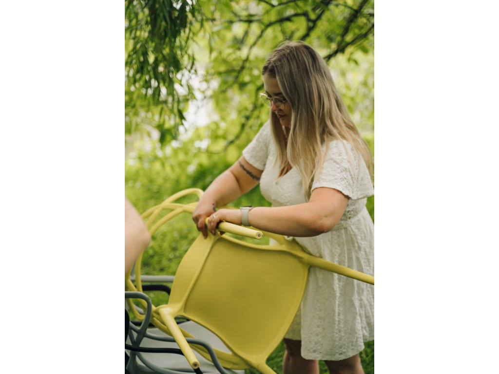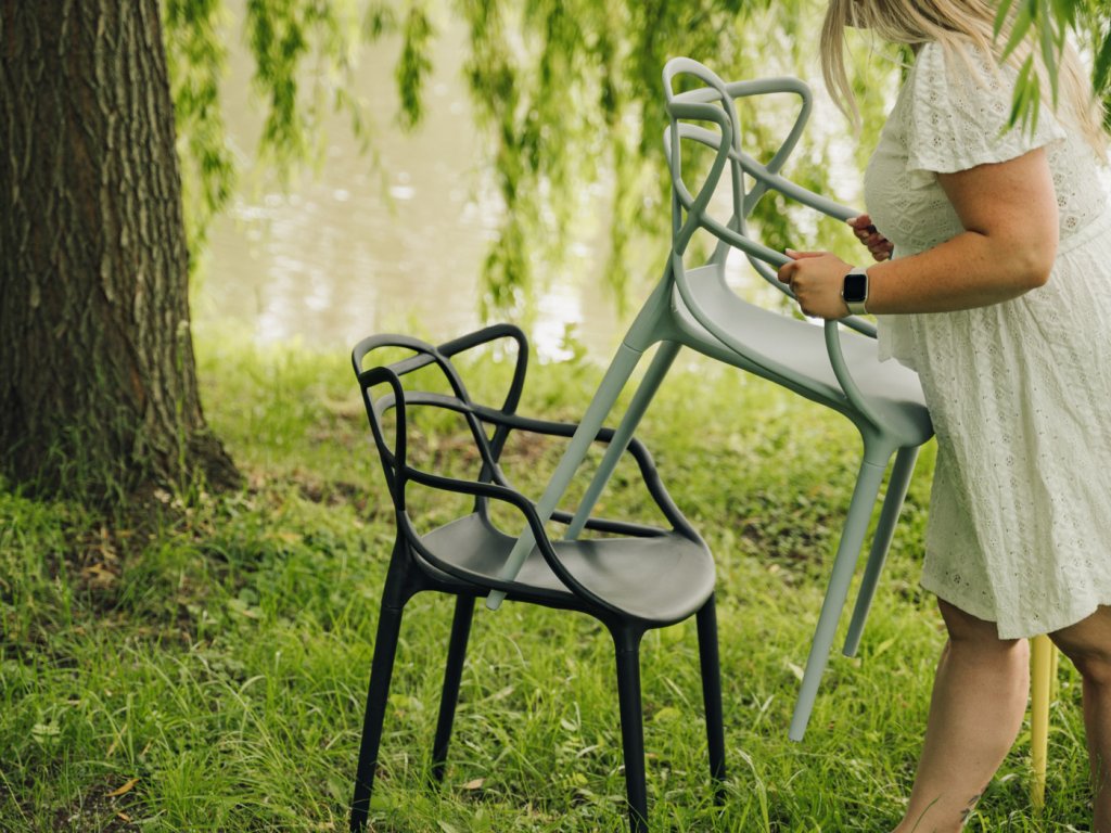 - Kunststoff ist nicht UV-stabil – der Stuhl sollte vor direkter Sonneneinstrahlung geschützt werden