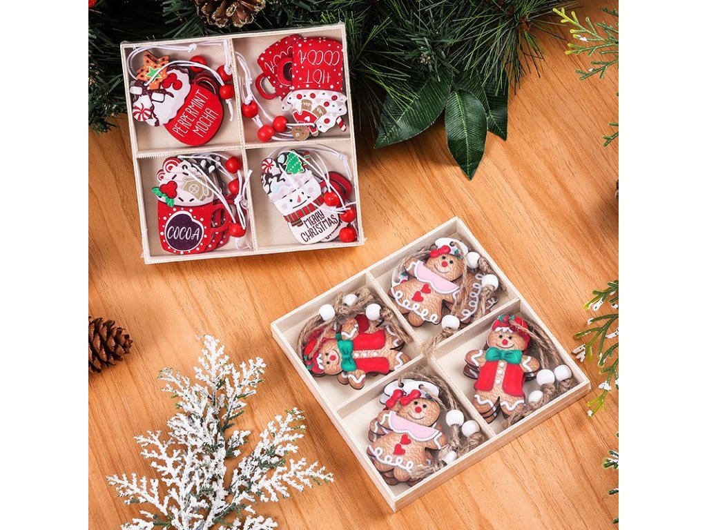 Weihnachtsschmuck-Set aus Holz HOT DRINKS, 12-tlg