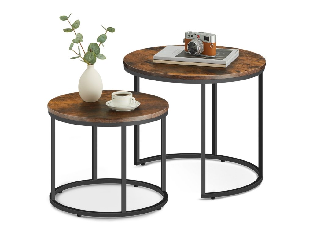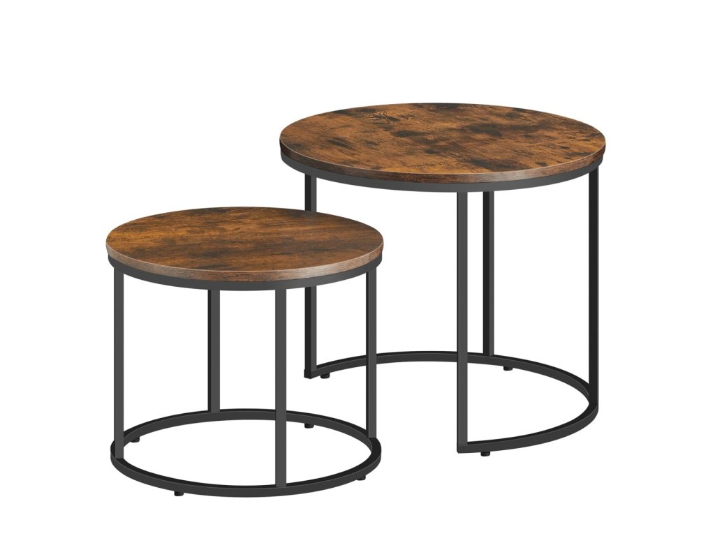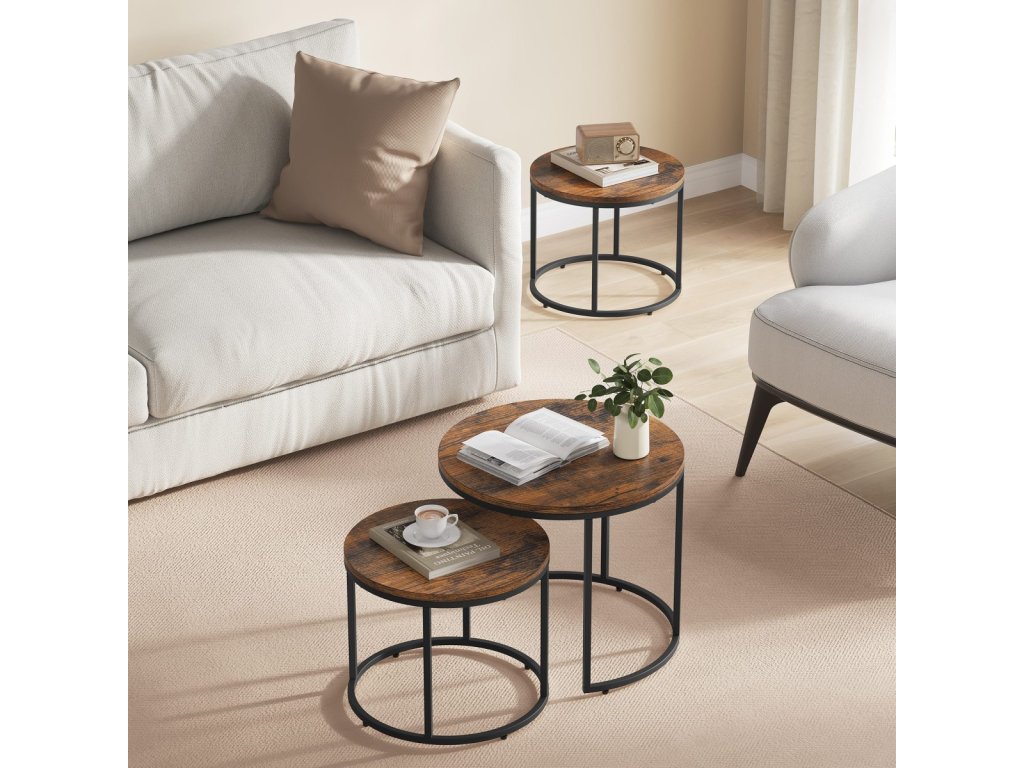 Diese Tische eignen sich perfekt als Nachtkonsolen im Schlafzimmer, wo sie ausreichend Platz für eine Lampe, Bücher oder einen Wecker bieten. Im Wohnzimmer dienen sie als stilvolle Couchtische zur Ablage von Kaffee, Dekorationen oder Zeitschriften. Dank ihres modernen Designs und der kompakten Abmessungen passen sie sich leicht auch kleinen Räumen wie Balkonen oder Terrassen an, wo sie einen gemütlichen Ort zur Entspannung schaffen. Kombination aus Holz und Metall verleiht Ihrem Interieur ein elegantes und zeitgemäßes Aussehen.