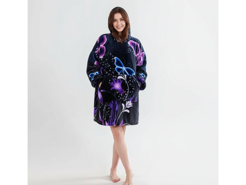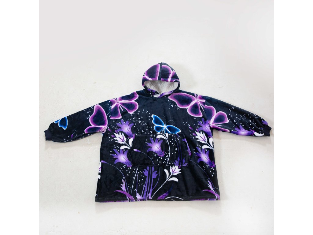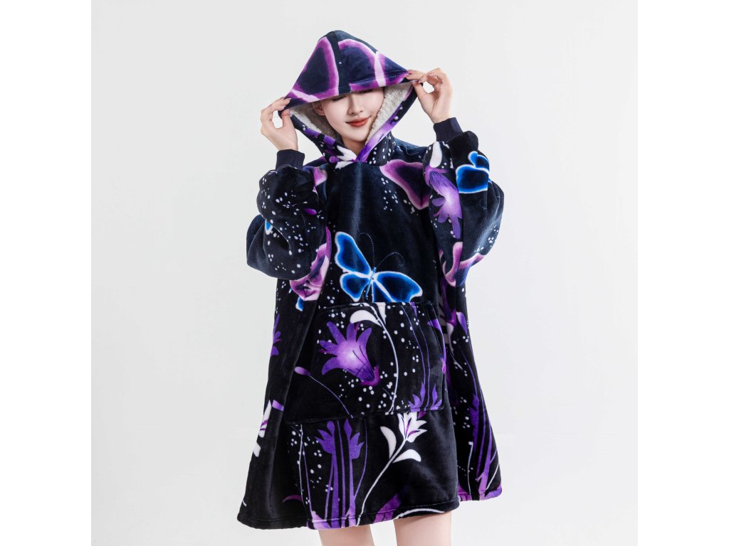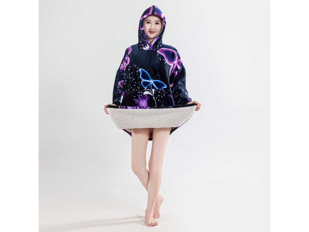 Sherpa-Kapuzendecke mit Ärmeln VIOLET BUTTERFLY, dunkelblau