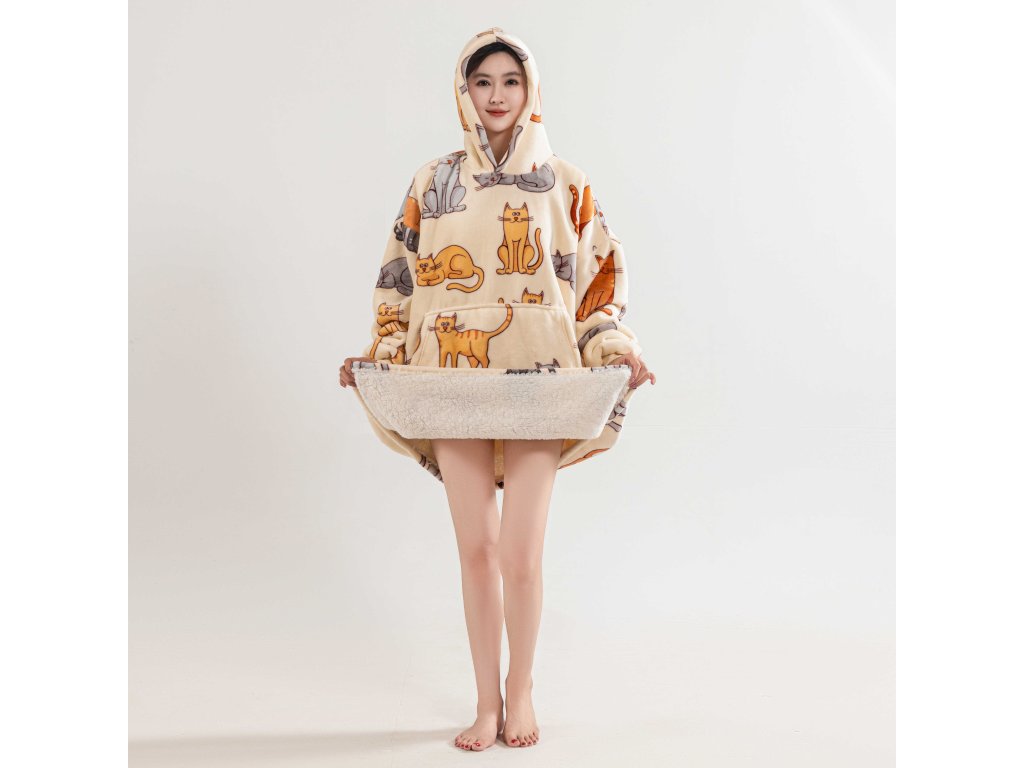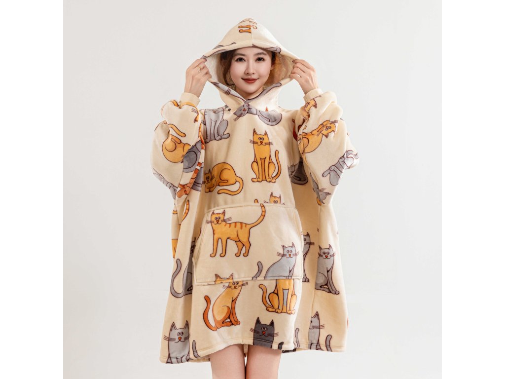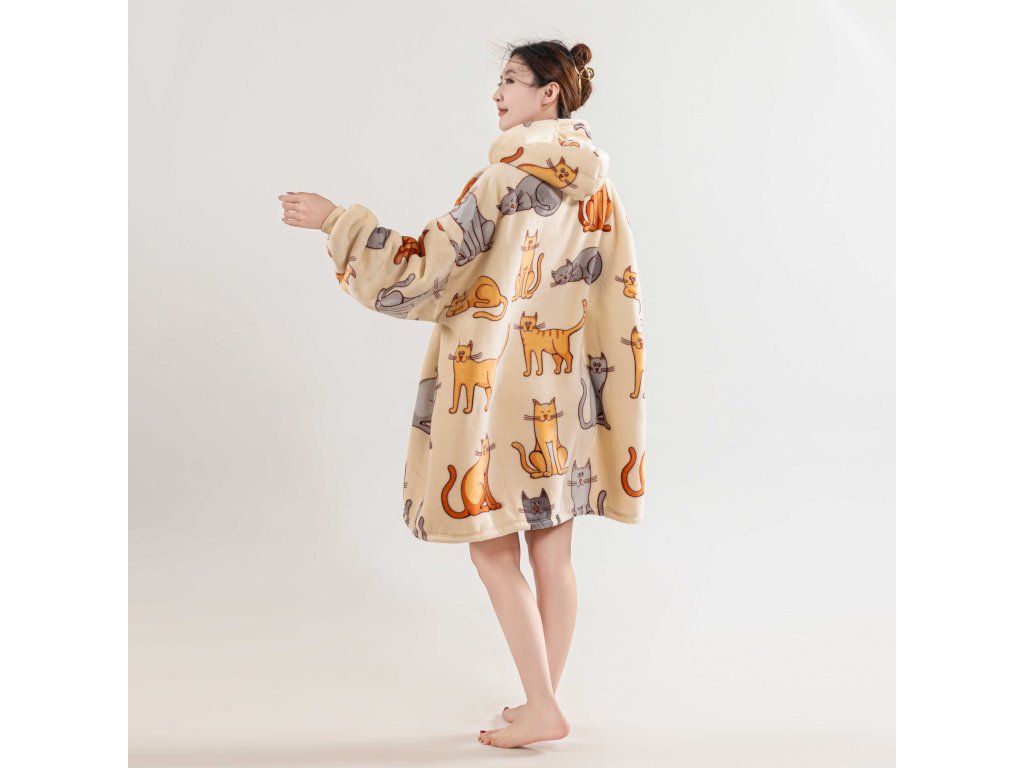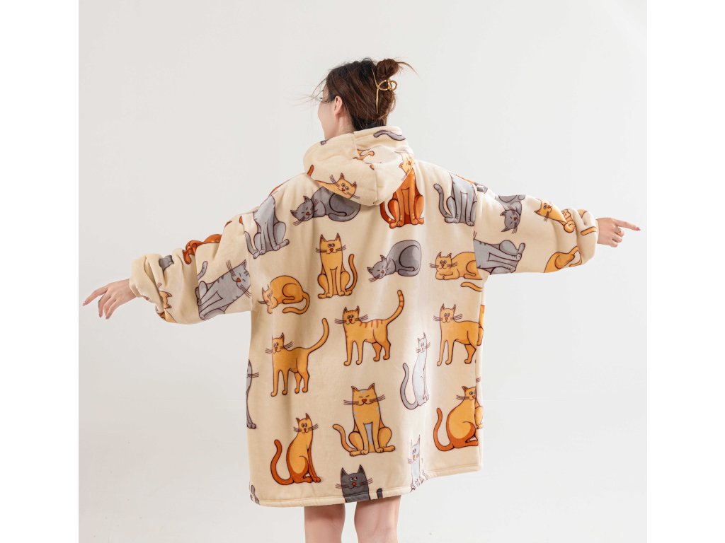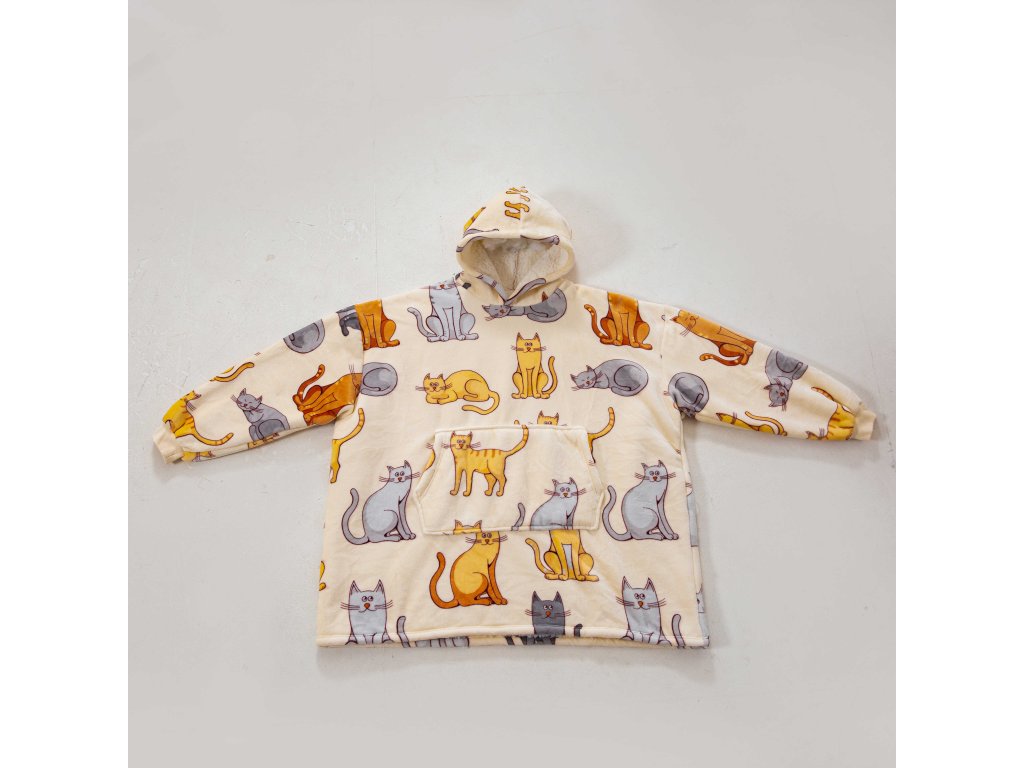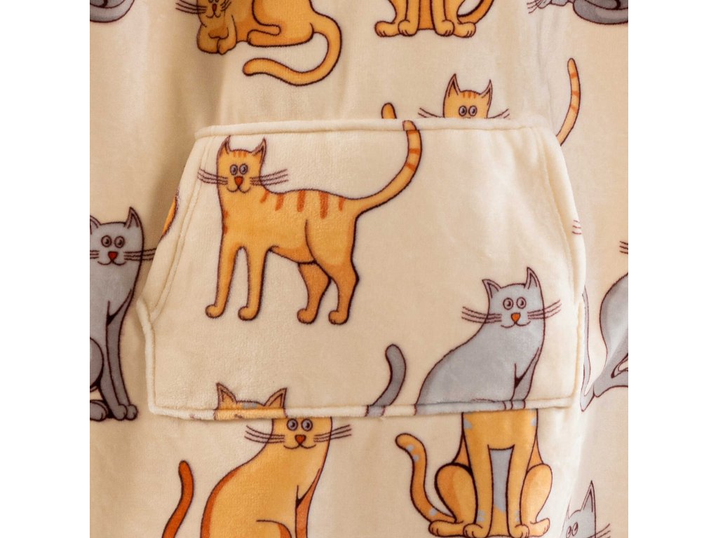 Sherpa-Sweatshirt-Decke mit Ärmeln und Kapuze COLORED CATS cremefarben
