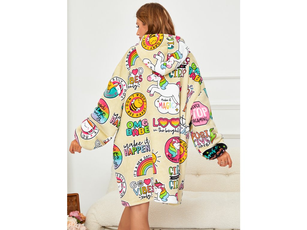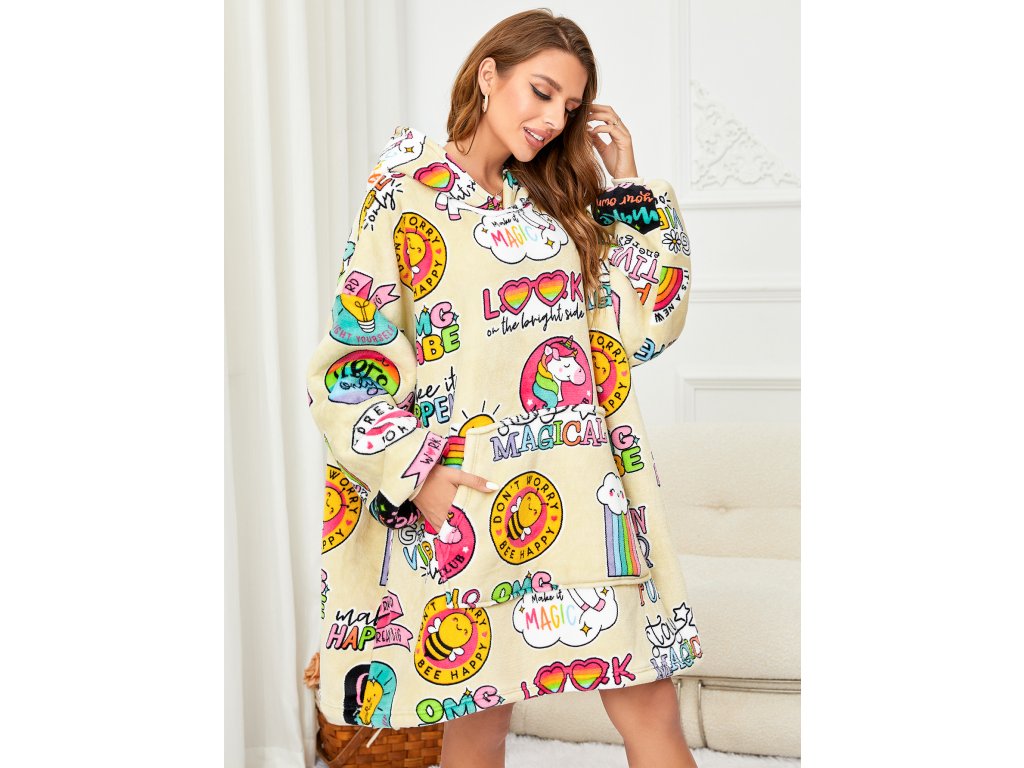 Lammfellimitat-Decke mit Ärmeln und Kapuze MAGICAL, creme