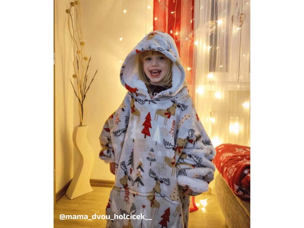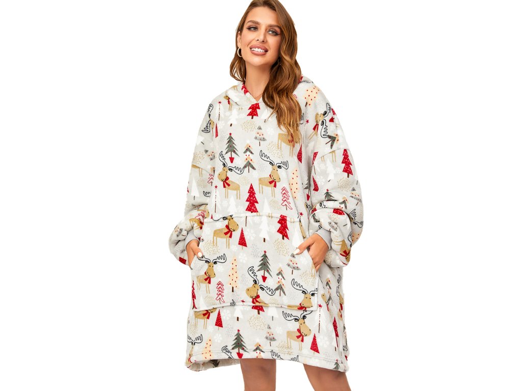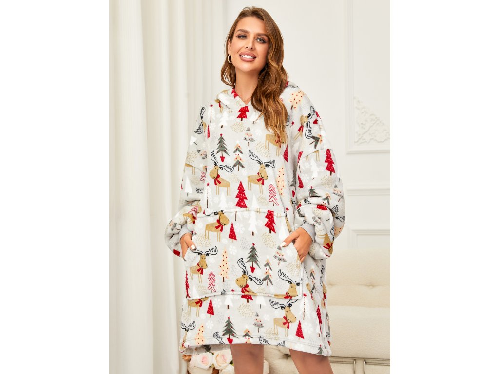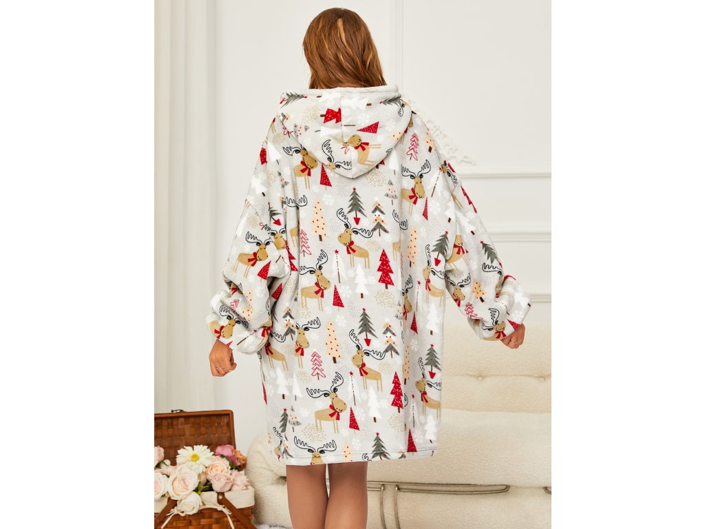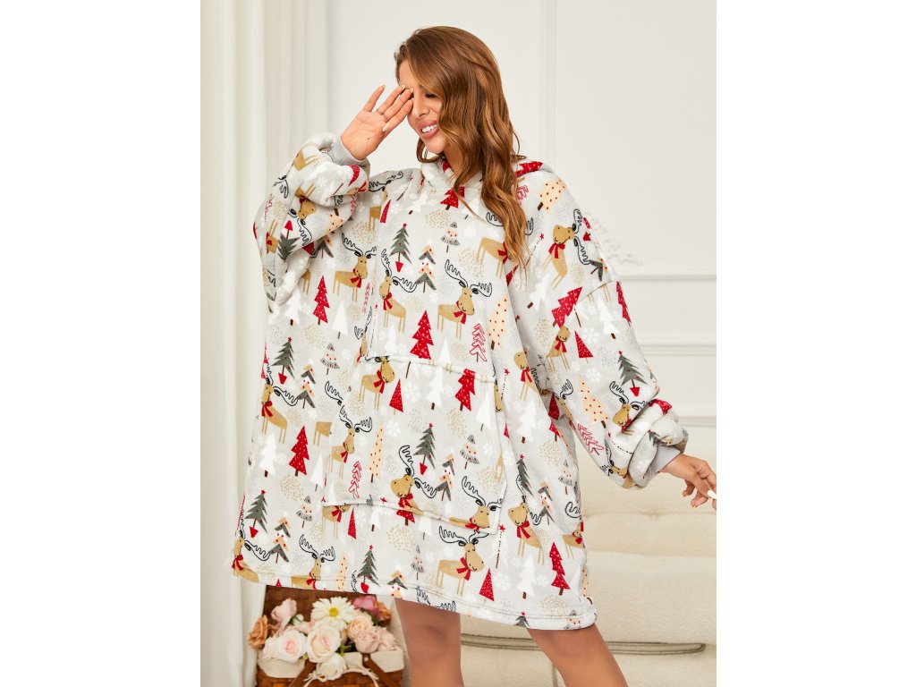 Lammfellimitat-Decke mit Ärmeln und Kapuze YULE HUG, hellgrau