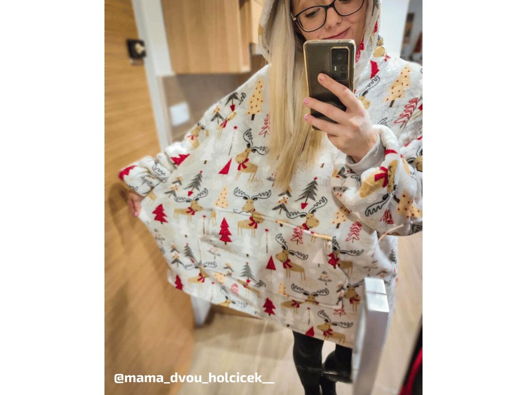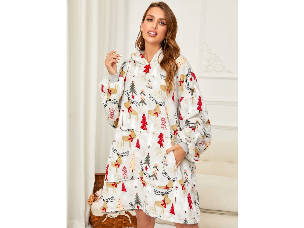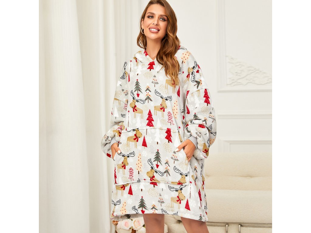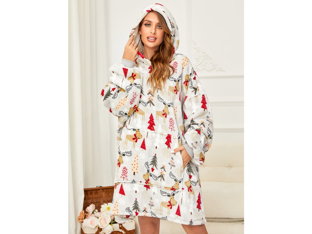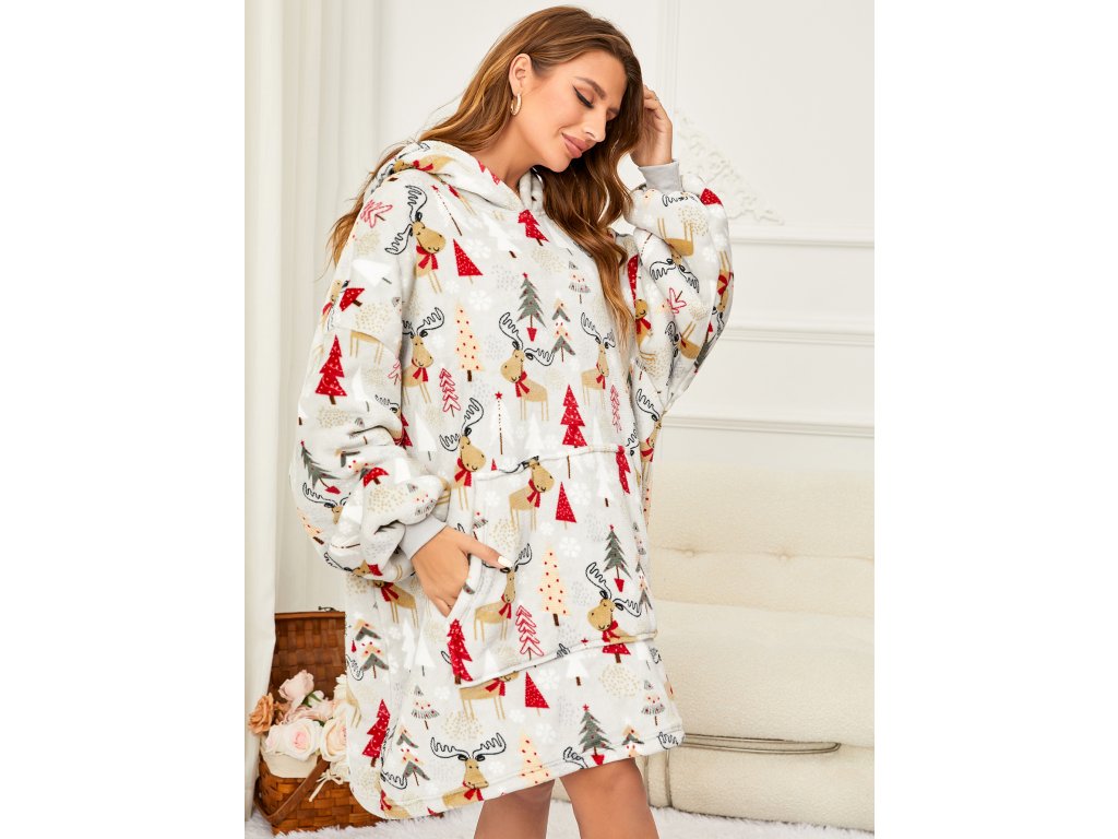 Lammfellimitat-Decke mit Ärmeln und Kapuze YULE HUG, hellgrau