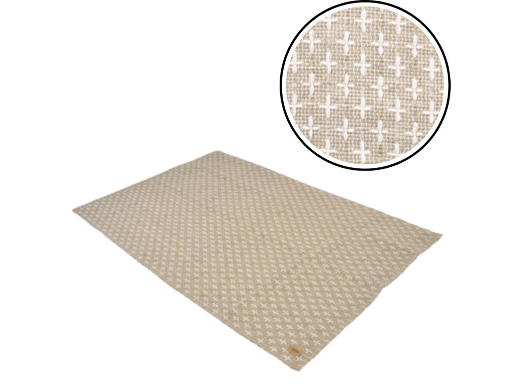 Der Teppich ESQUINA mit den Maßen 140 x 200 cm in brauner Farbe bringt einen natürlichen Touch und eine gemütliche Atmosphäre in jeden Raum. Er ist aus recycelter Baumwolle hergestellt, wodurch er nicht nur stilvoll, sondern auch ein nachhaltiges Accessoire für Ihr Zuhause ist. Sein feines geometrisches Muster in Form von kleinen Kreuzen erzeugt einen dezenten Effekt, der auffällt, ohne störend zu wirken. Aus robustem, gewebtem Material gefertigt, ist er langlebig und gleichzeitig angenehm zu berühren.