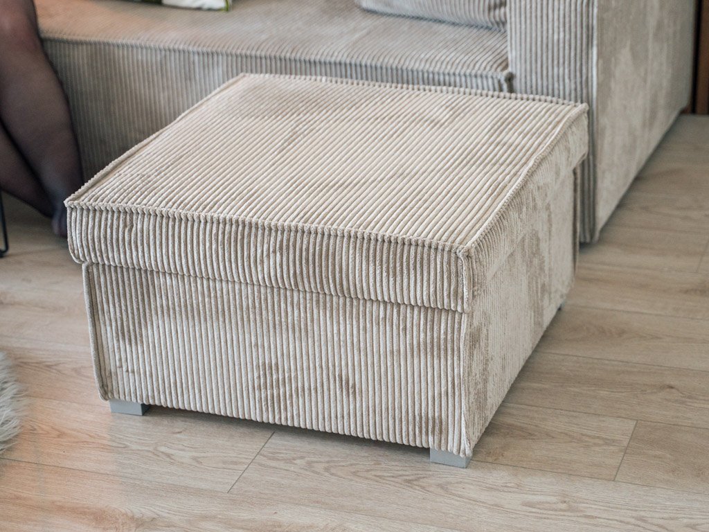 - Der Hocker ist mit einem Griff zum bequemen Öffnen ausgestattet