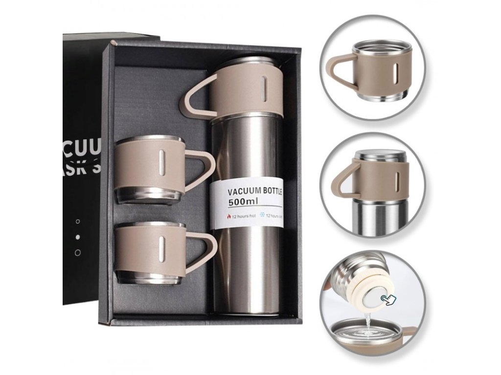 - 3 Tassen, die als Verschluss der Thermoskanne dienen, sind im Set enthalten