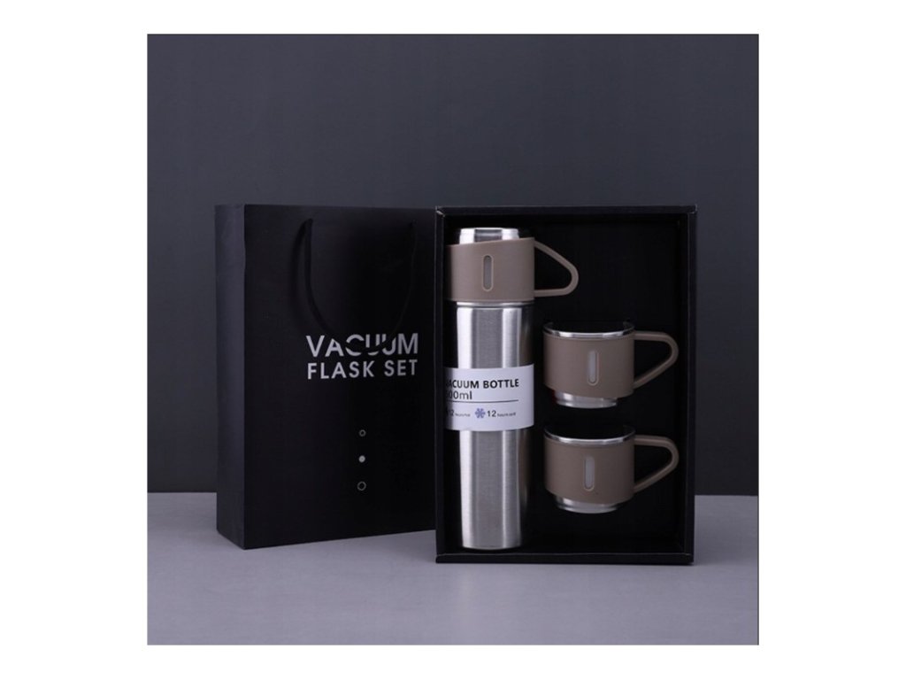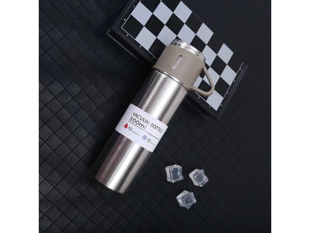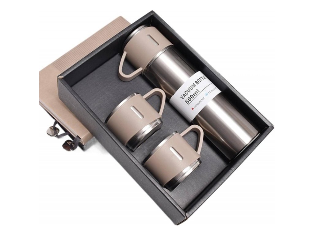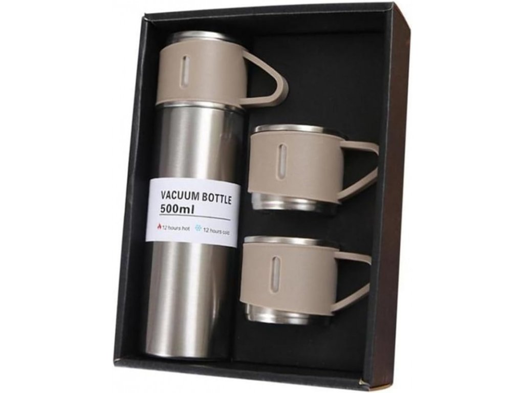 Thermoskanne 500 ml mit 3 Tassen HOT&COLD, beige