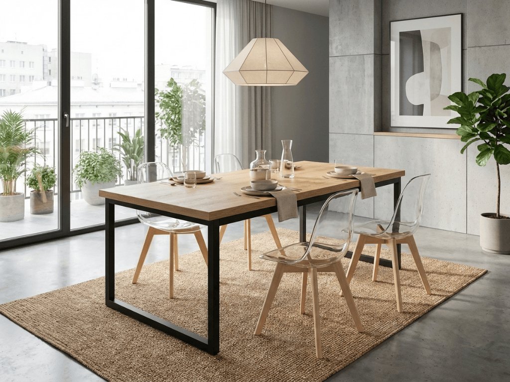 Ein skandinavisches Esszimmer ist ein Symbol für Einfachheit, Helligkeit und natürliche Harmonie. Die Kombination aus klaren Linien, natürlichen Materialien und sanften Farbnuancen schafft einen gemütlichen Raum, der zum Verweilen mit Familie und Freunden einlädt. Mit dem Fokus auf Funktionalität und Ästhetik wird es zu einem Ort, an dem Komfort mit zeitlosem Design verschmilzt. Ein paar Accessoires in neutralen Tönen hinzugefügt, verleiht dem Esszimmer seinen einzigartigen Charakter voller Ruhe und Eleganz.