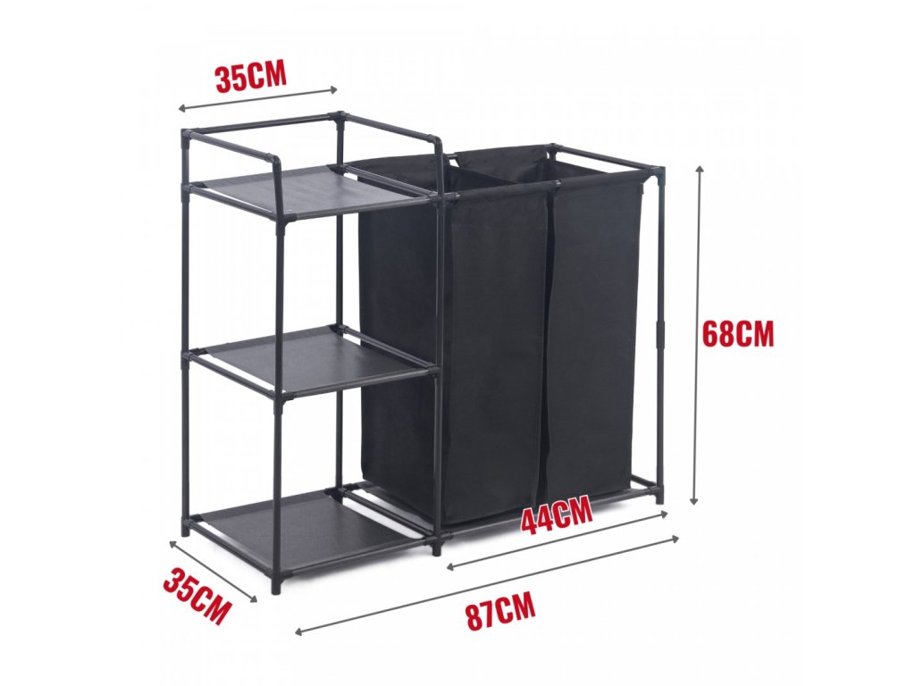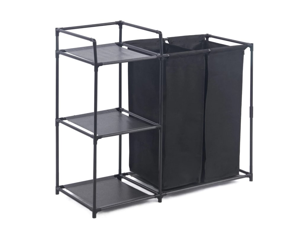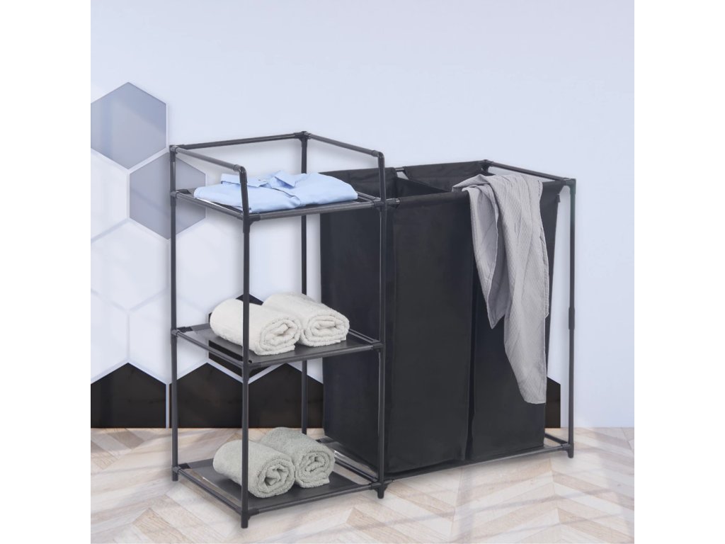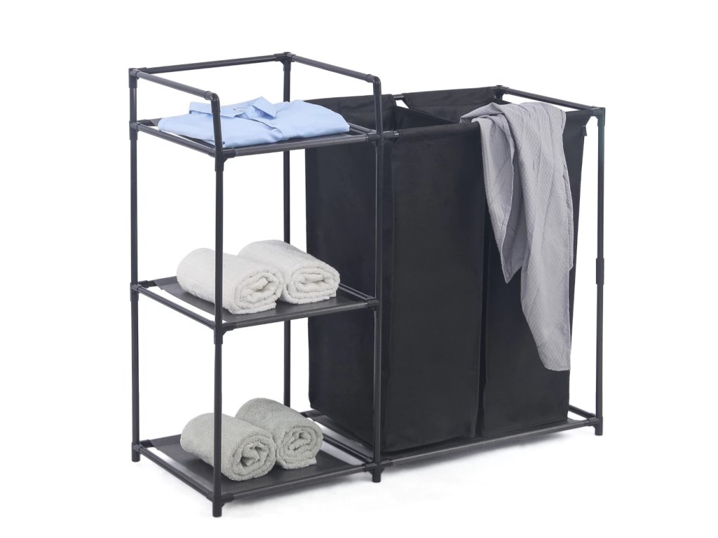Wäschekorb mit Regal HERZBERG 42x172 cm schwarz