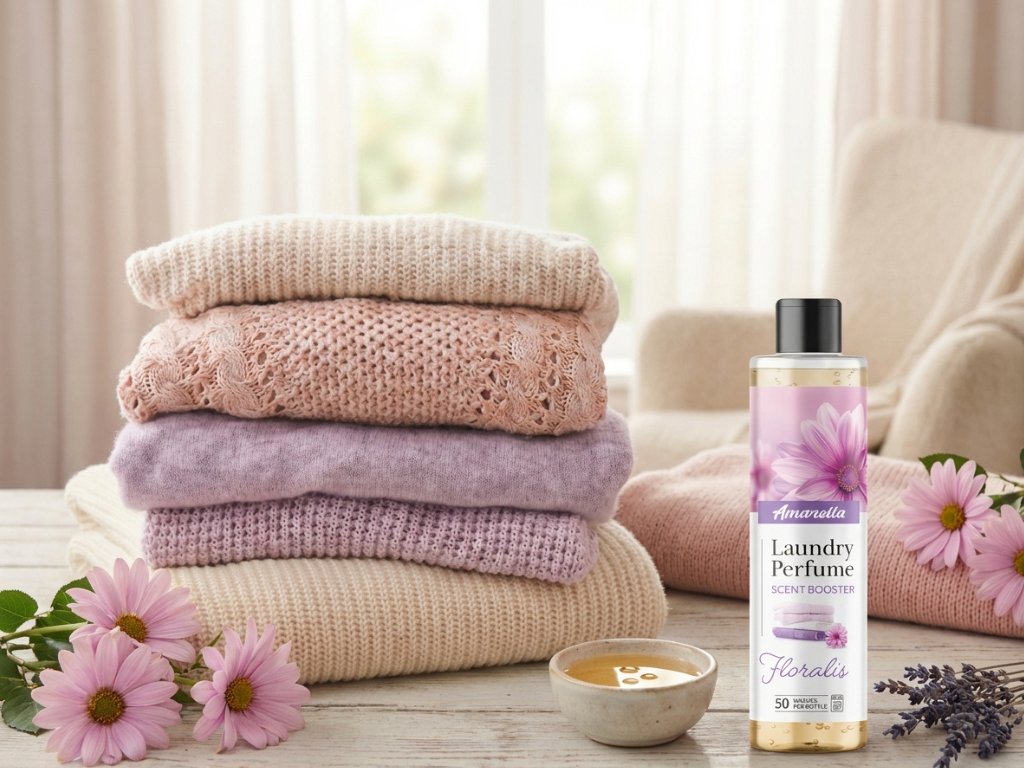 Parfüms für die Wäsche AMARELLA sind hochkonzentrierte parfümierte Öle, die entwickelt wurden, um Ihre Kleidung einfach und effektiv zu erfrischen. Dank fortschrittlicher Technologie verleihen sie Textilien langanhaltende Frische, Weichheit und ein makelloses Aussehen. Ihre Wäsche bleibt wunderbar weich und duftend nach dem Trocknen und während des Tragens, sei es Alltagskleidung, Handtücher oder Bettwäsche. AMARELLA hebt das gewöhnliche Waschen auf ein neues Niveau und bringt einen intensiven Duft mit einem natürlich weichen Gefühl – mühelos und mit maximaler Wirkung.